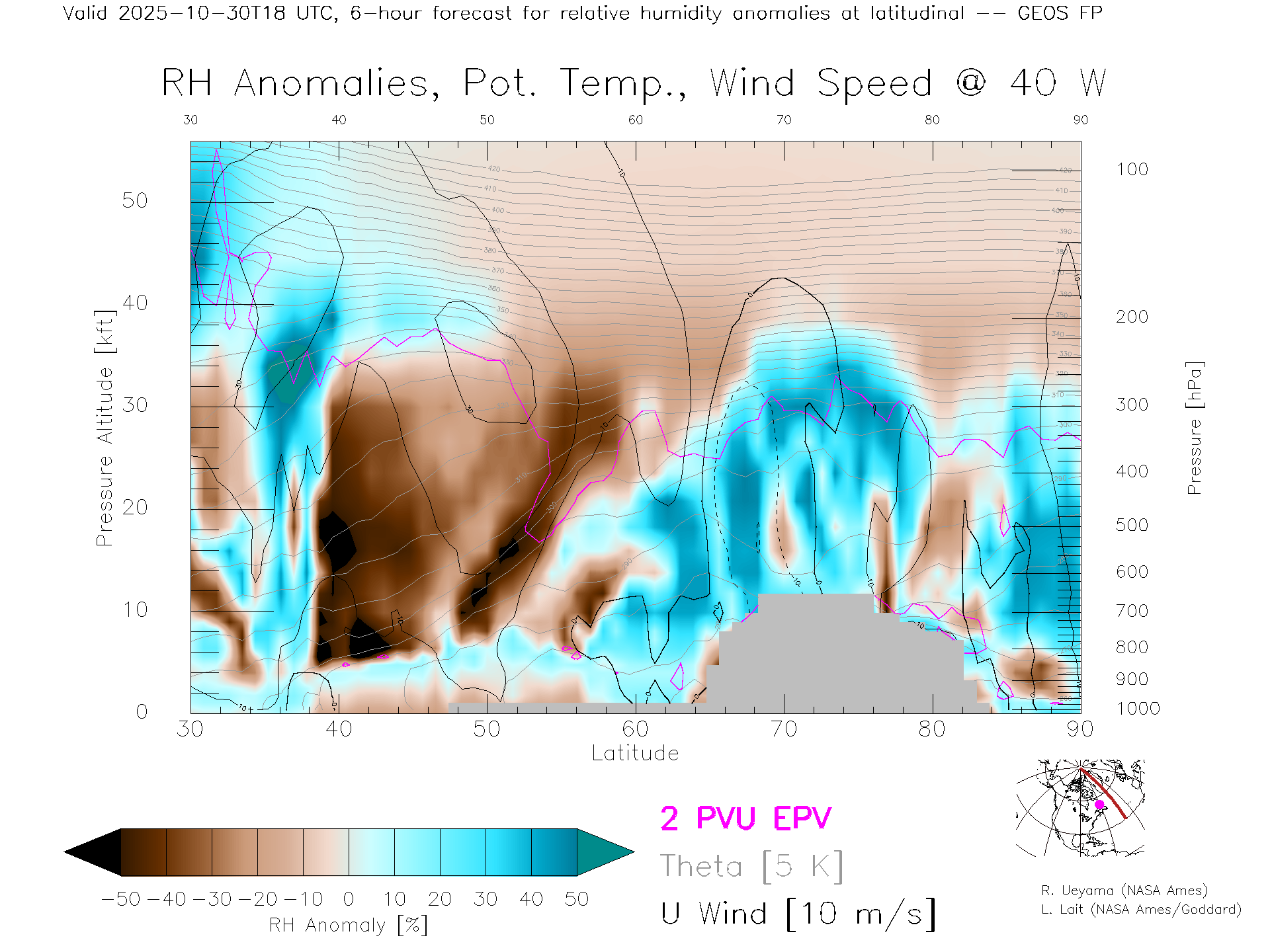 GEOS Forecast Rel. Hum. X-Section (40 W)