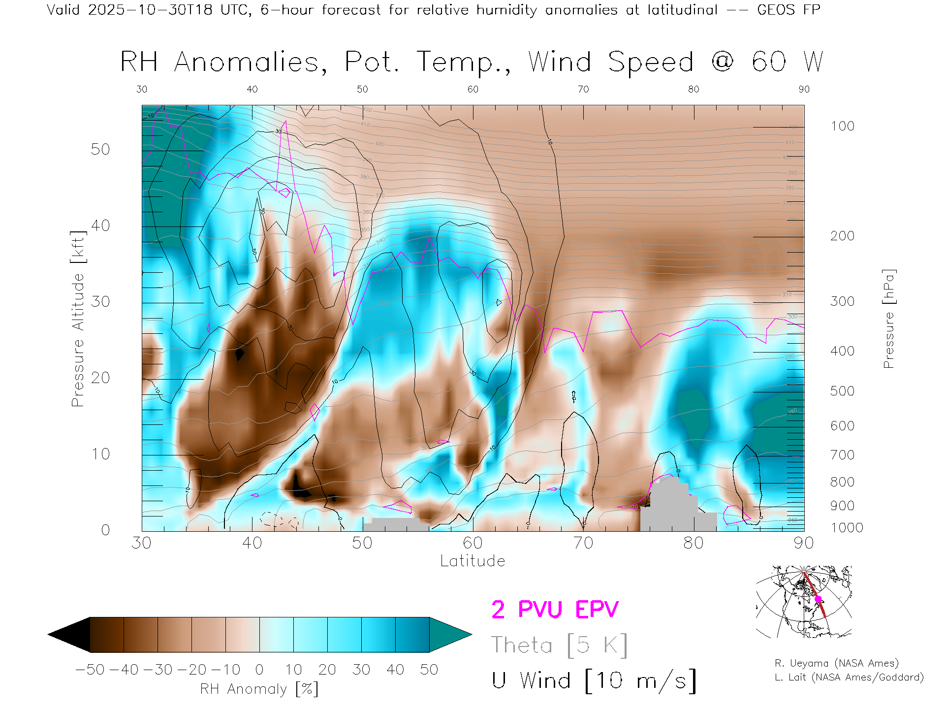 GEOS Forecast Rel. Hum. X-Section (60 W)
