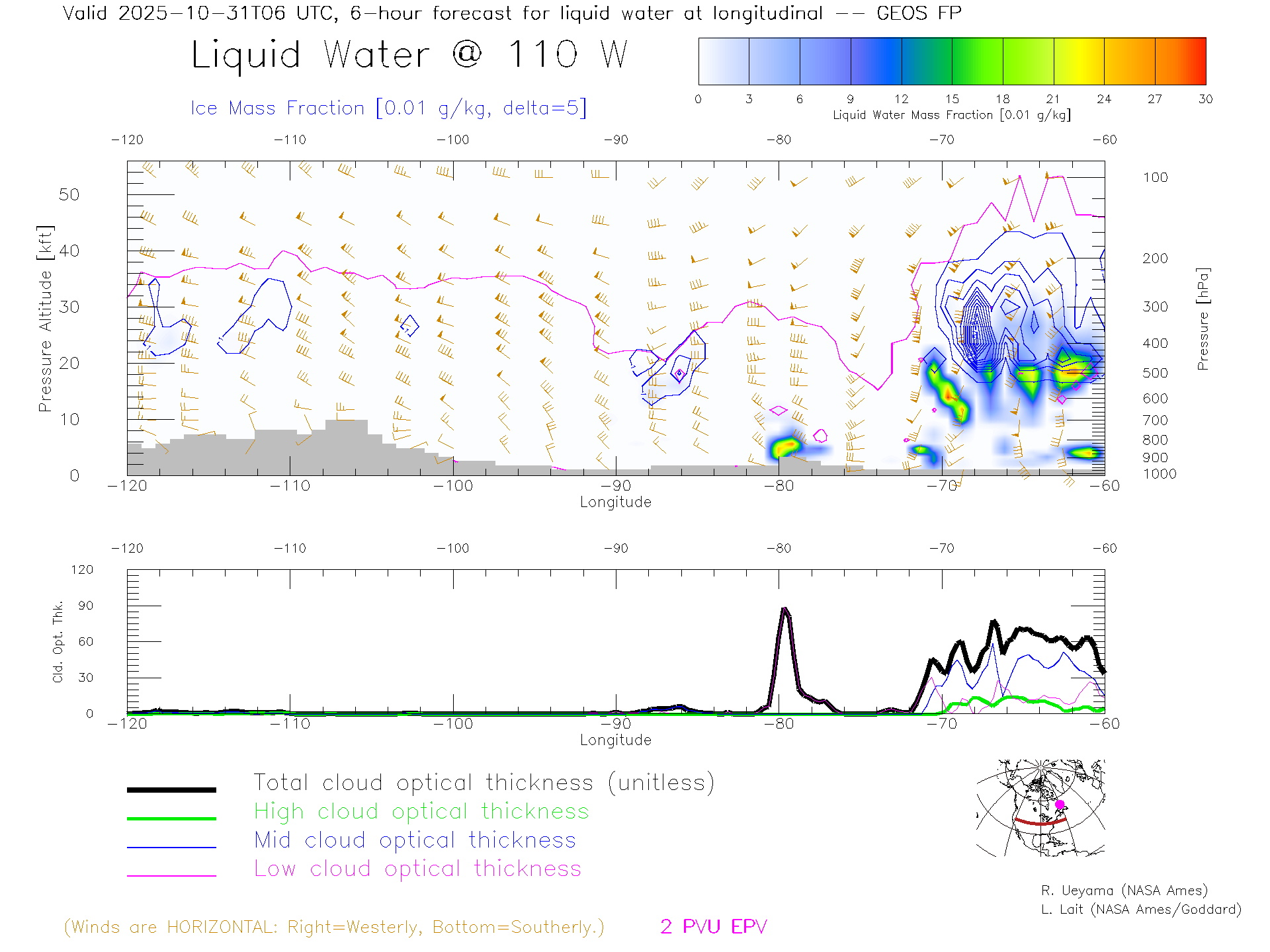 GEOS Forecast Cloud Water Content X-Section (40 N)