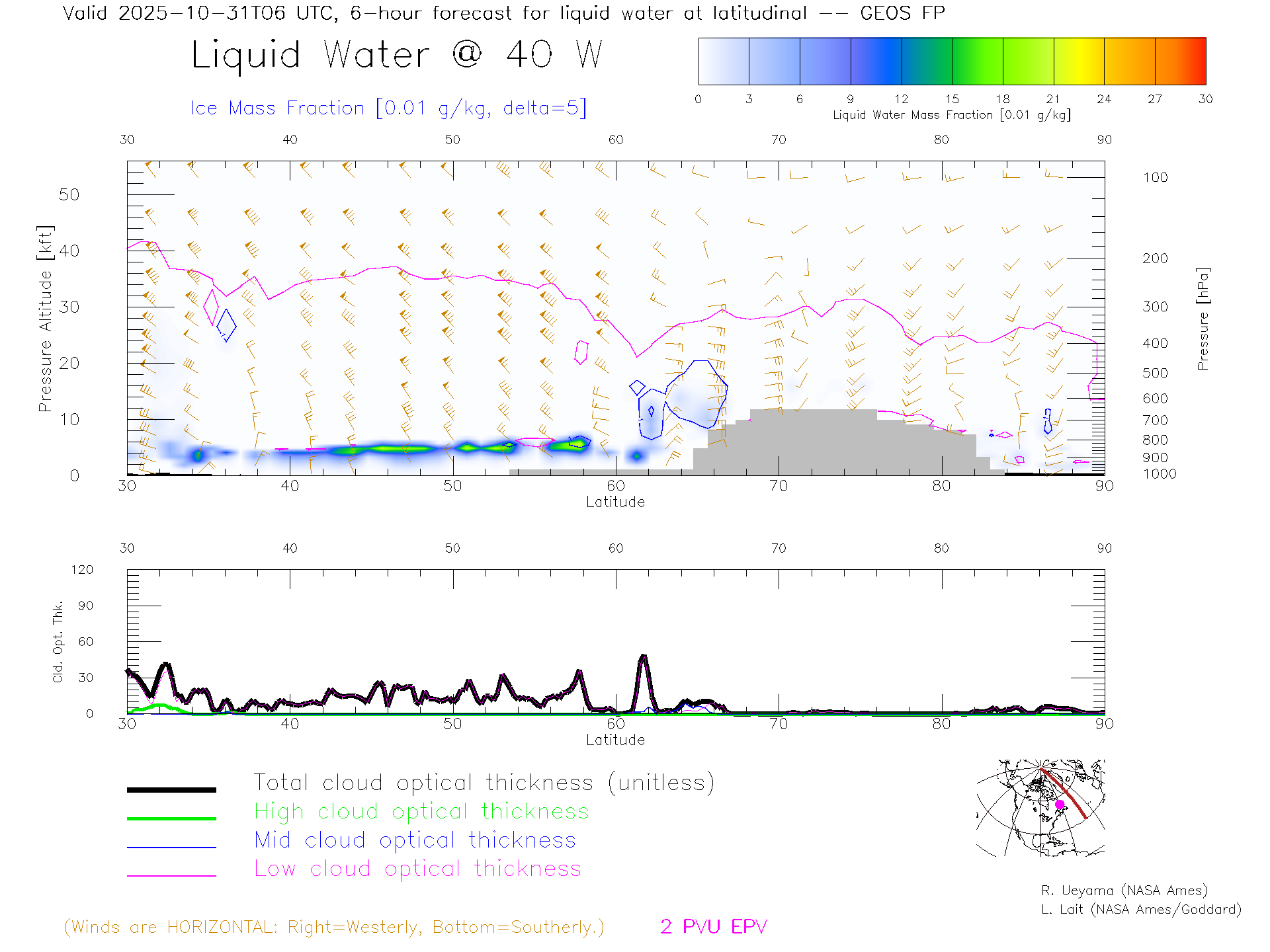 GEOS Forecast Cloud Water Content X-Section (40 W)