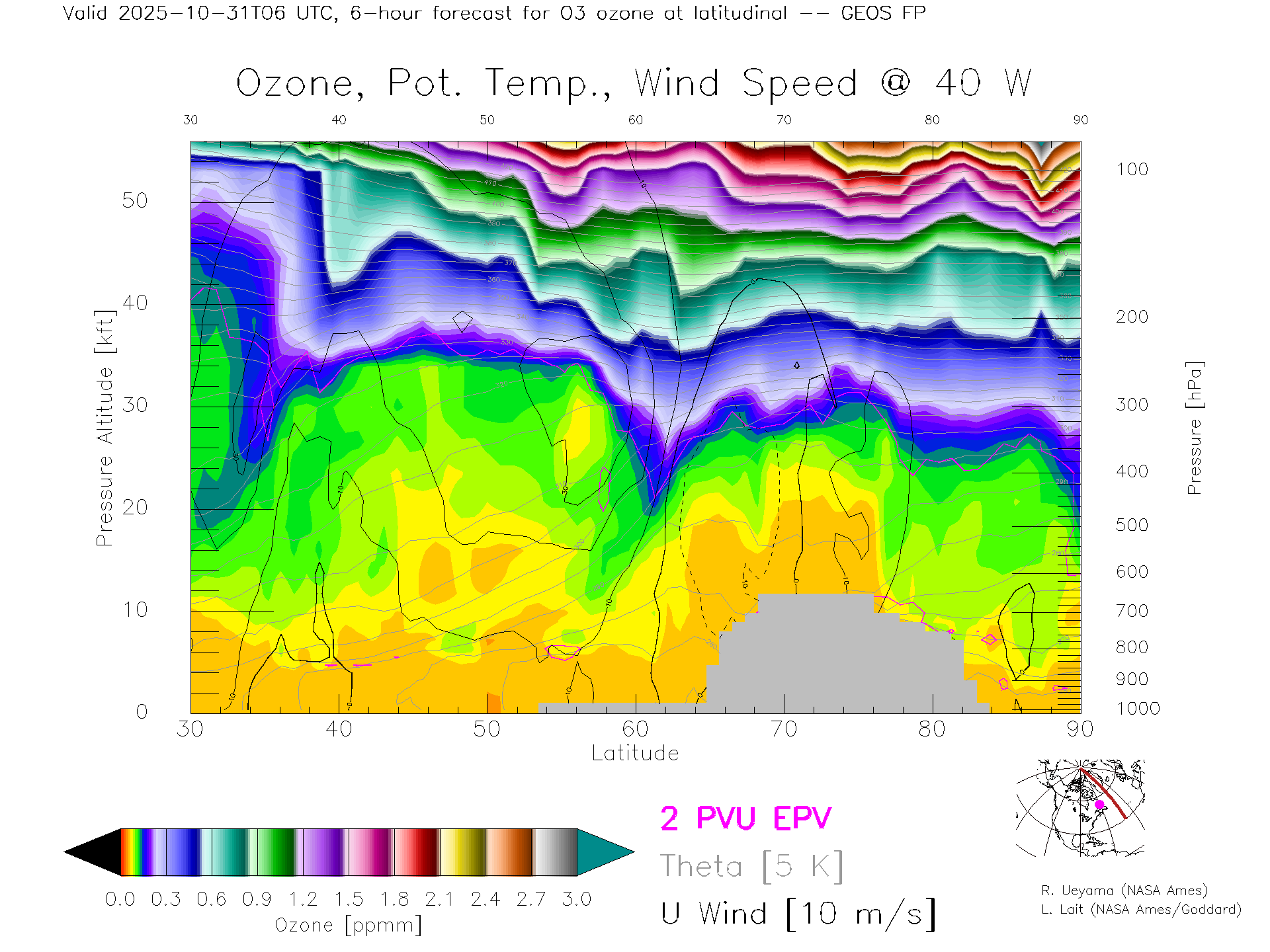 GEOS Forecast Ozone X-Section (40 W)