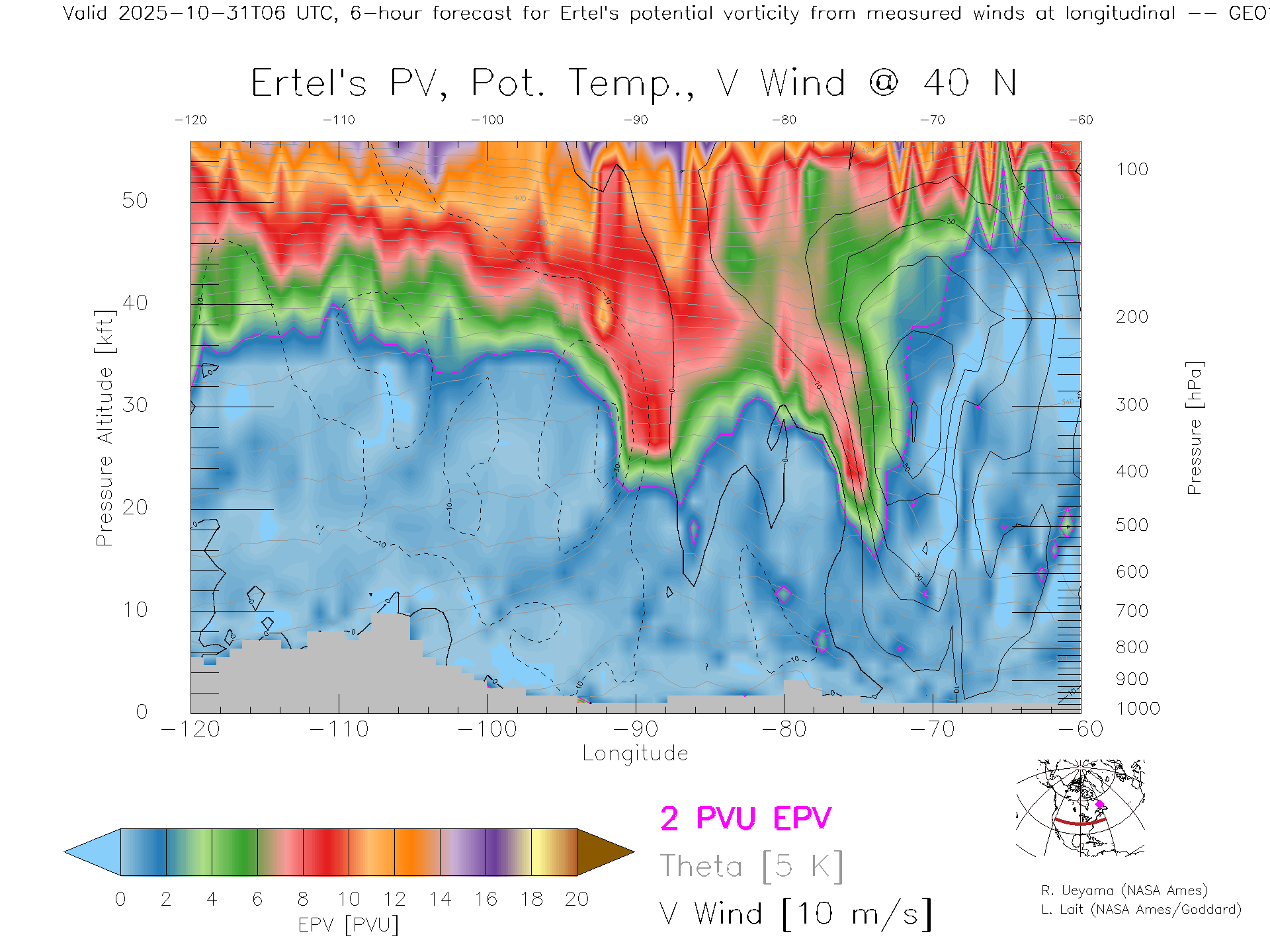 GEOS Forecast PV X-Section (40 N)