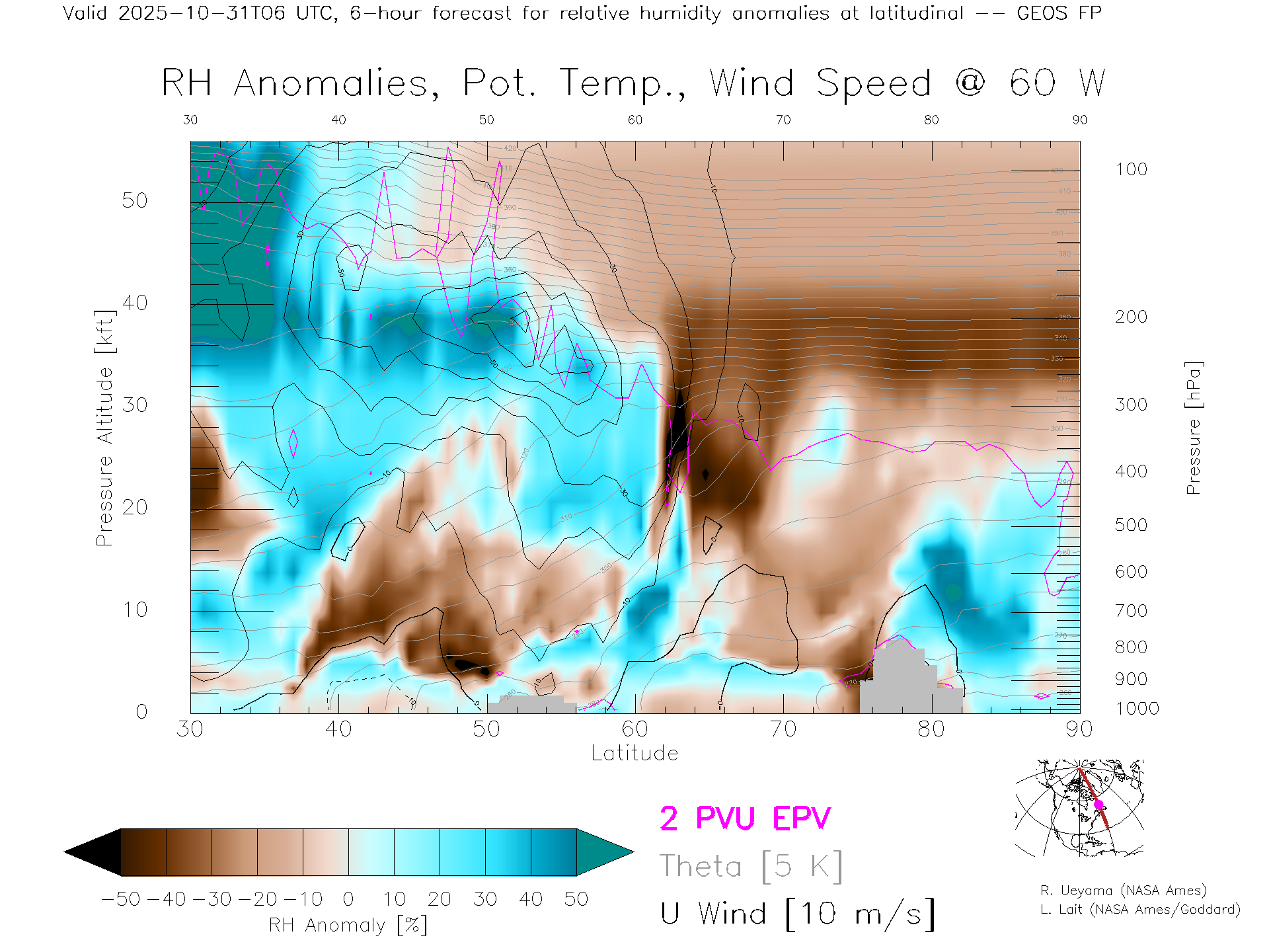 GEOS Forecast Rel. Hum. X-Section (60 W)