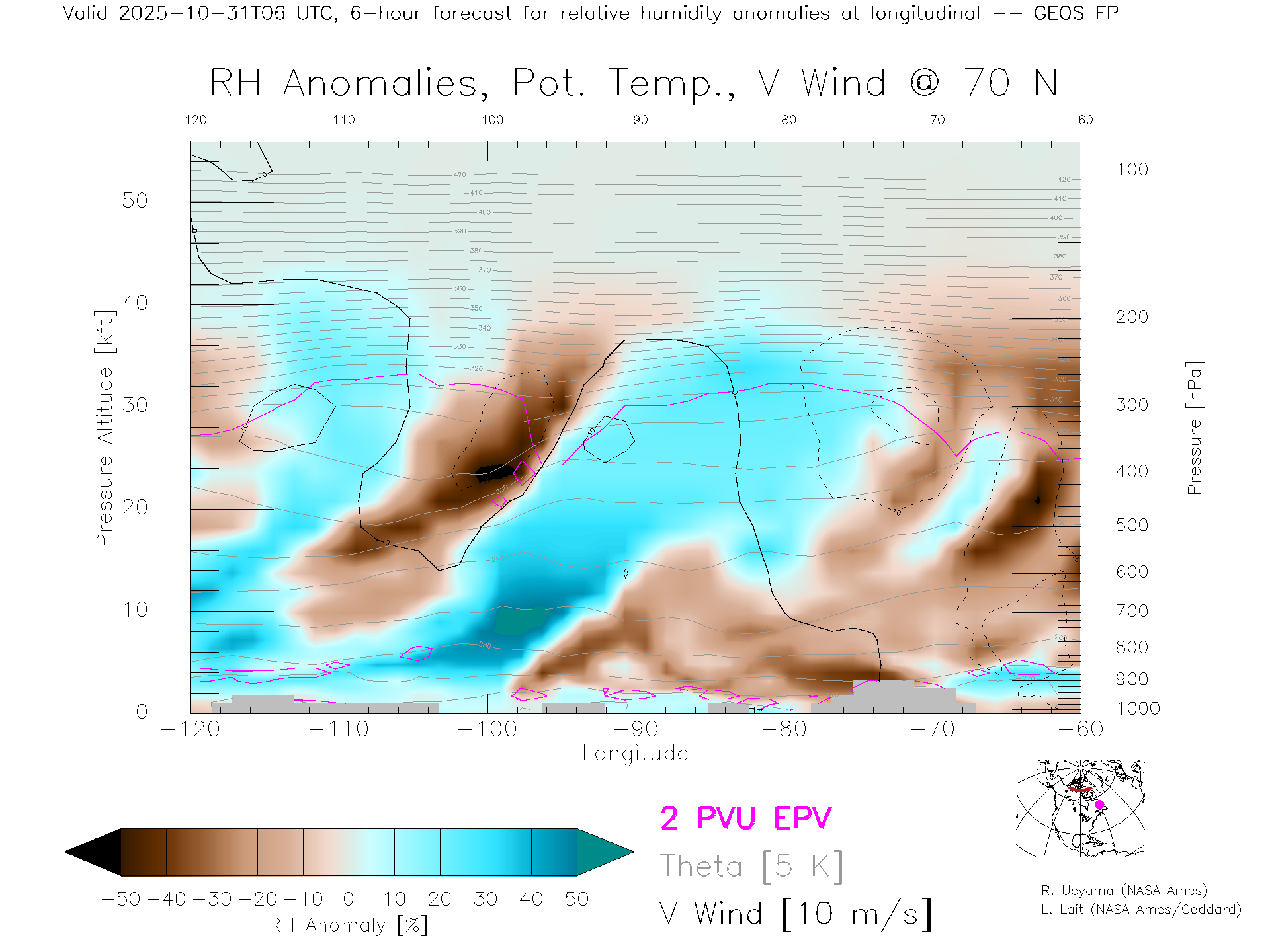 GEOS Forecast Rel. Hum. X-Section (70 N)