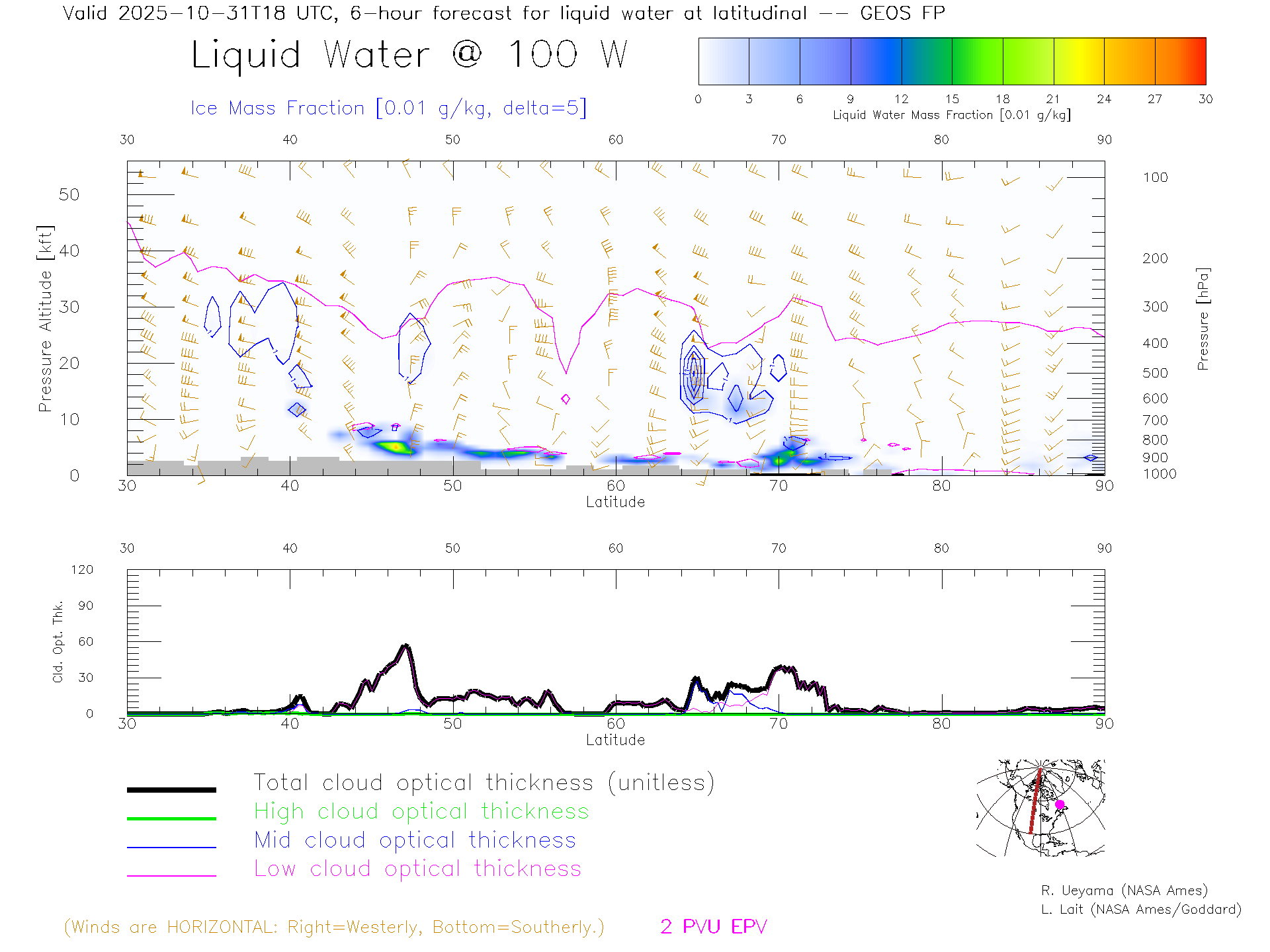GEOS Forecast Cloud Water Content X-Section (100 W)