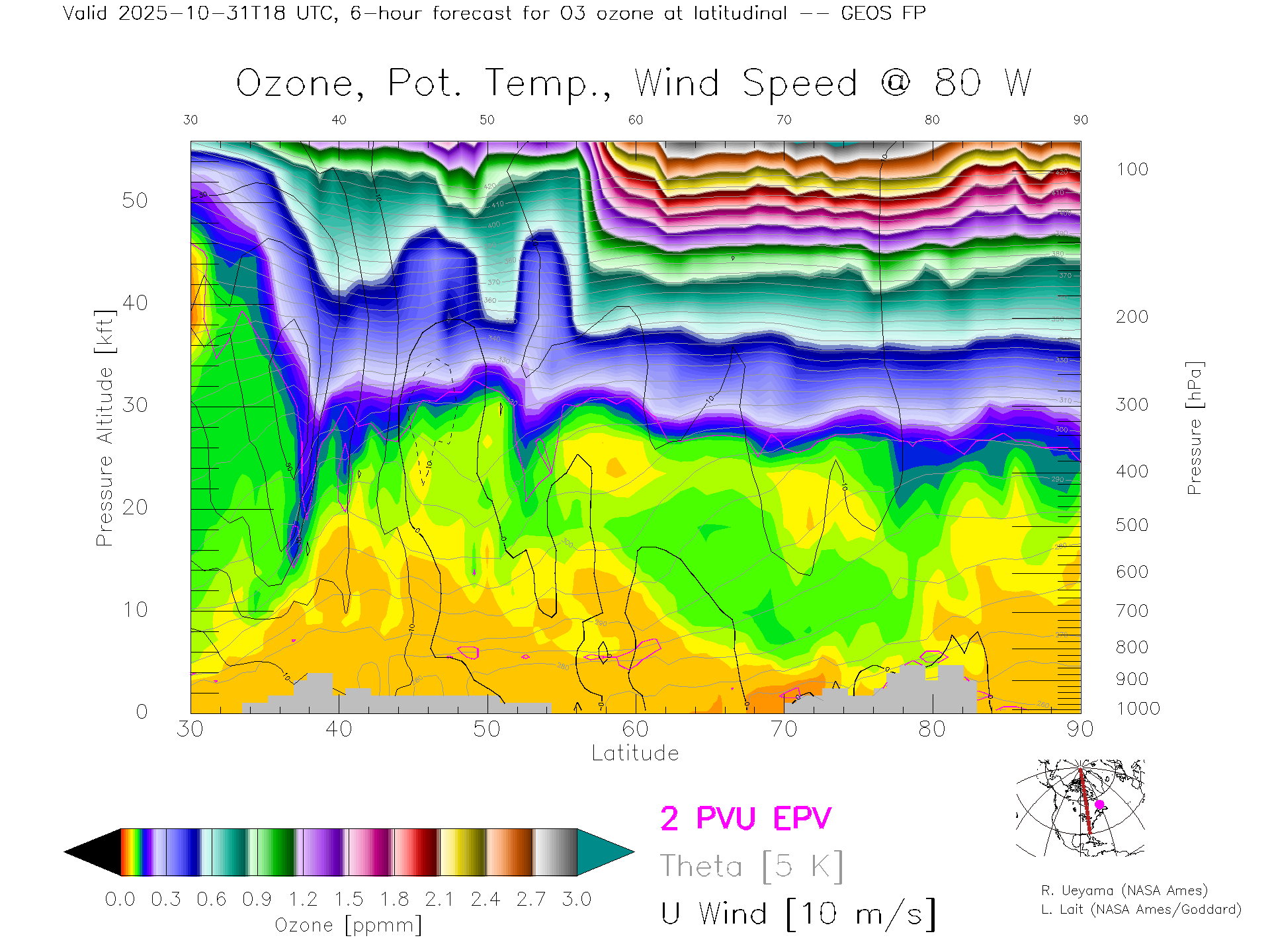 GEOS Forecast Ozone X-Section (80 W)