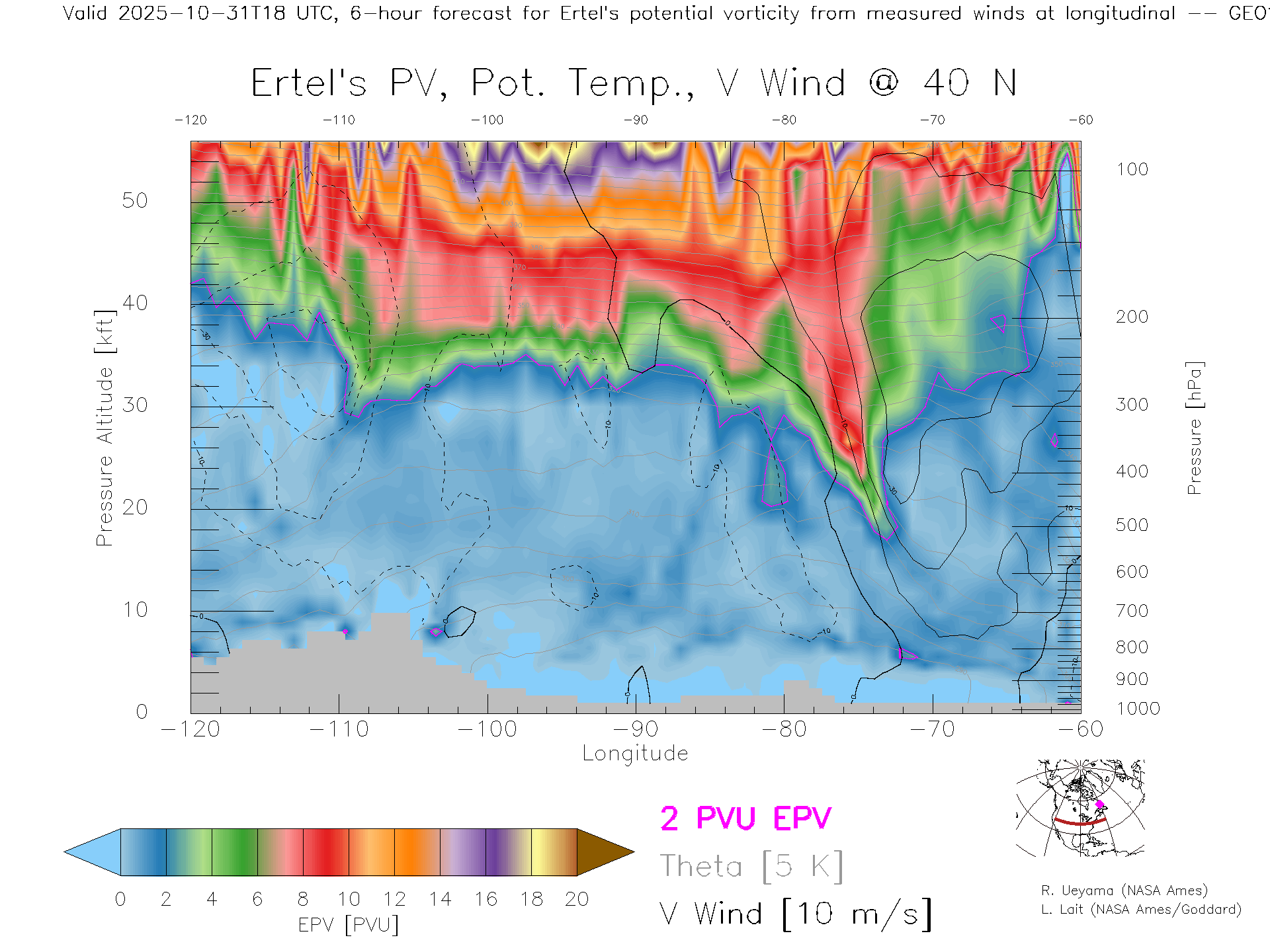 GEOS Forecast PV X-Section (40 N)