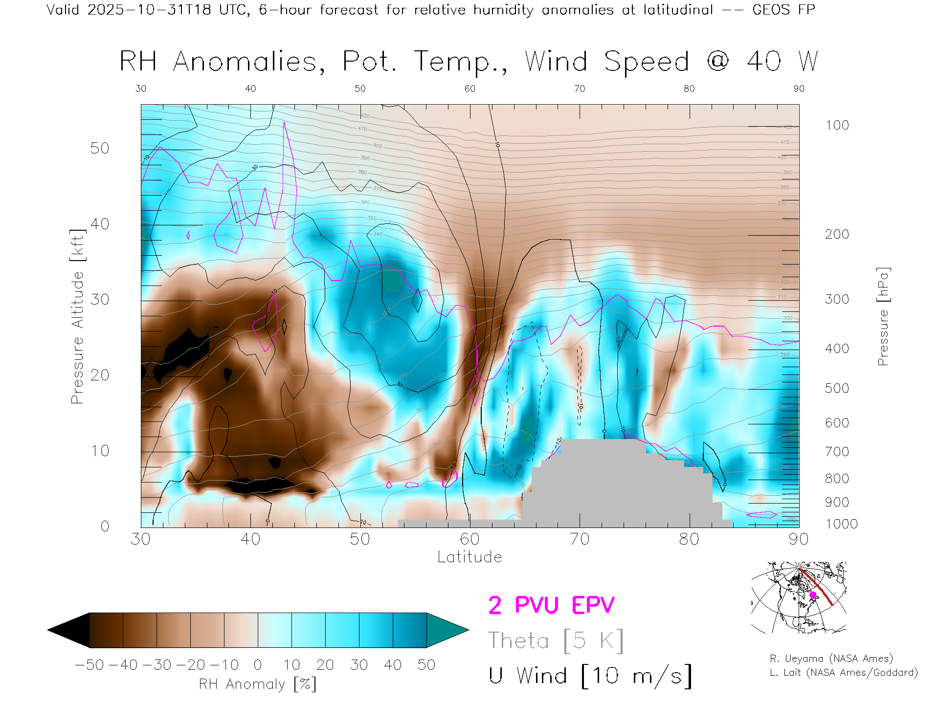 GEOS Forecast Rel. Hum. X-Section (40 W)