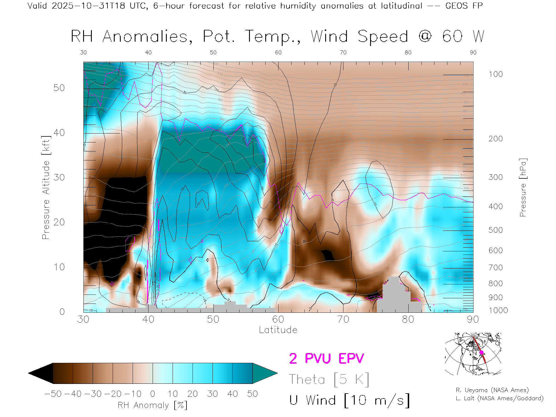 GEOS Forecast Rel. Hum. X-Section (60 W)