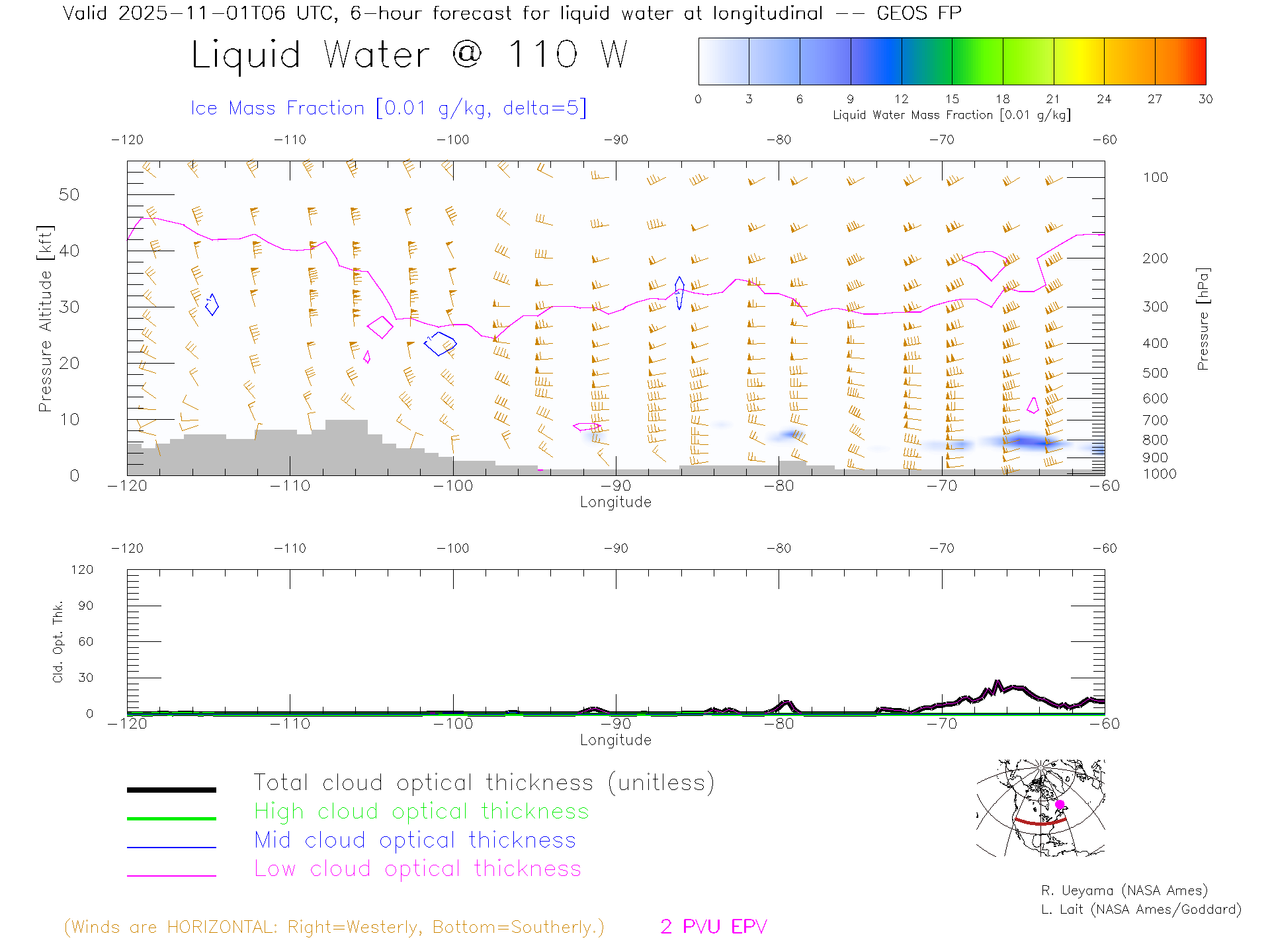 GEOS Forecast Cloud Water Content X-Section (40 N)