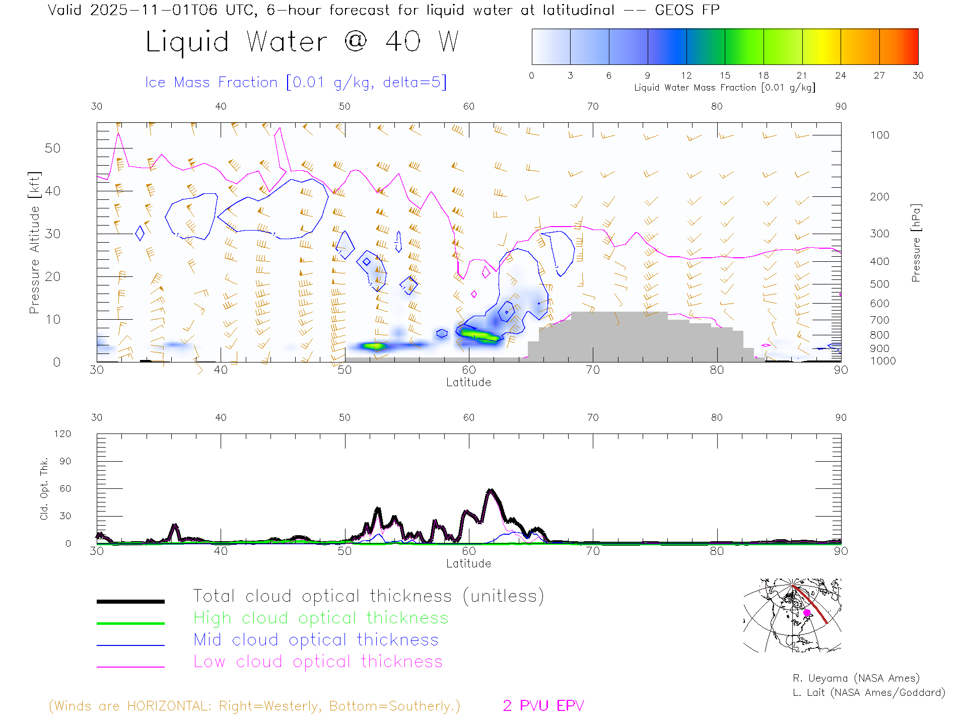 GEOS Forecast Cloud Water Content X-Section (40 W)