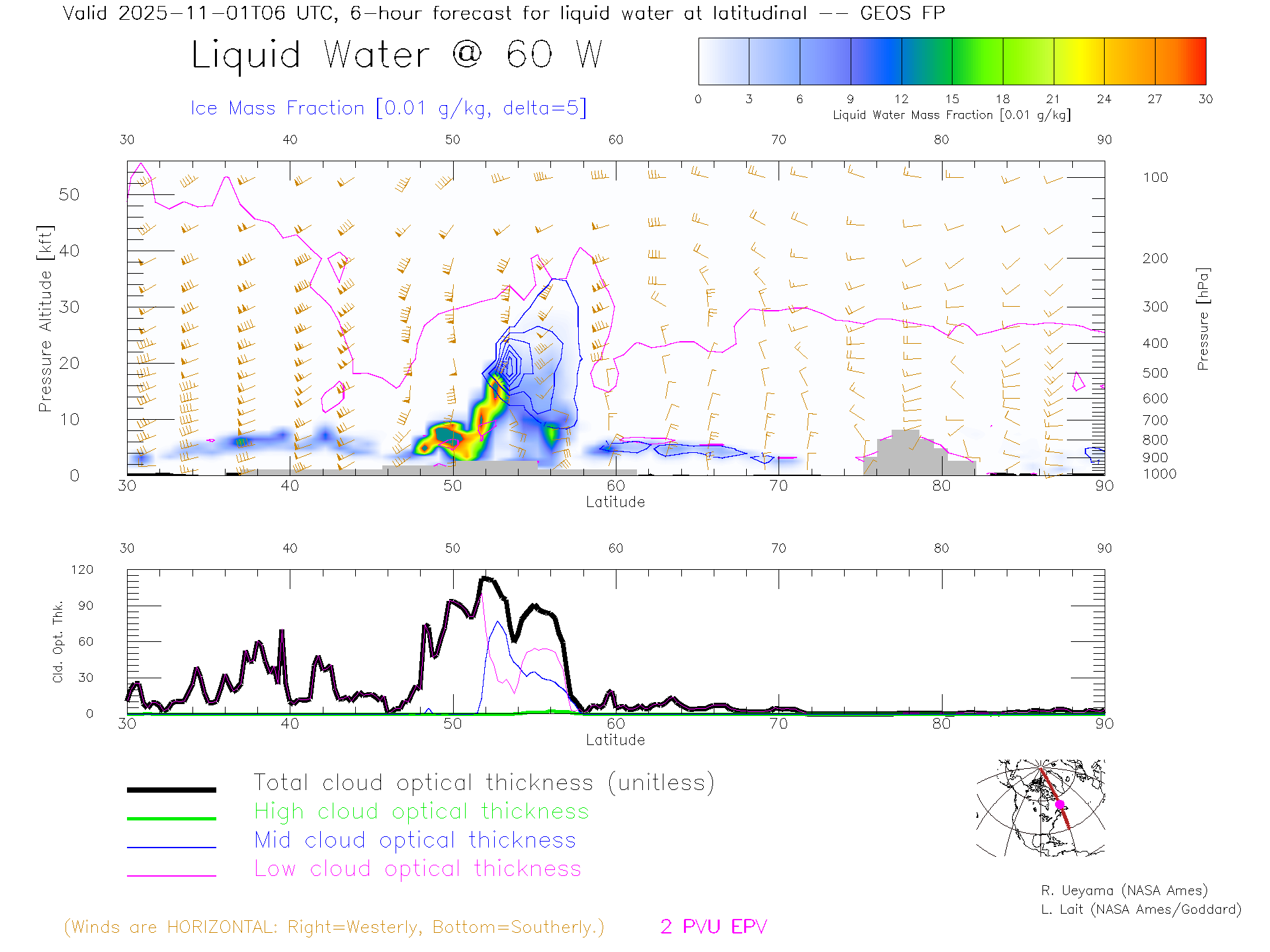 GEOS Forecast Cloud Water Content X-Section (60 W)