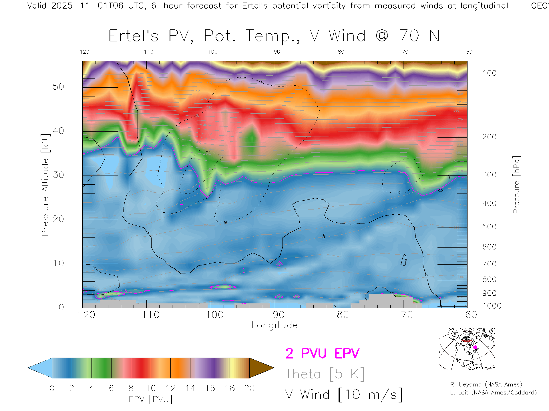 GEOS Forecast PV X-Section (70 N)