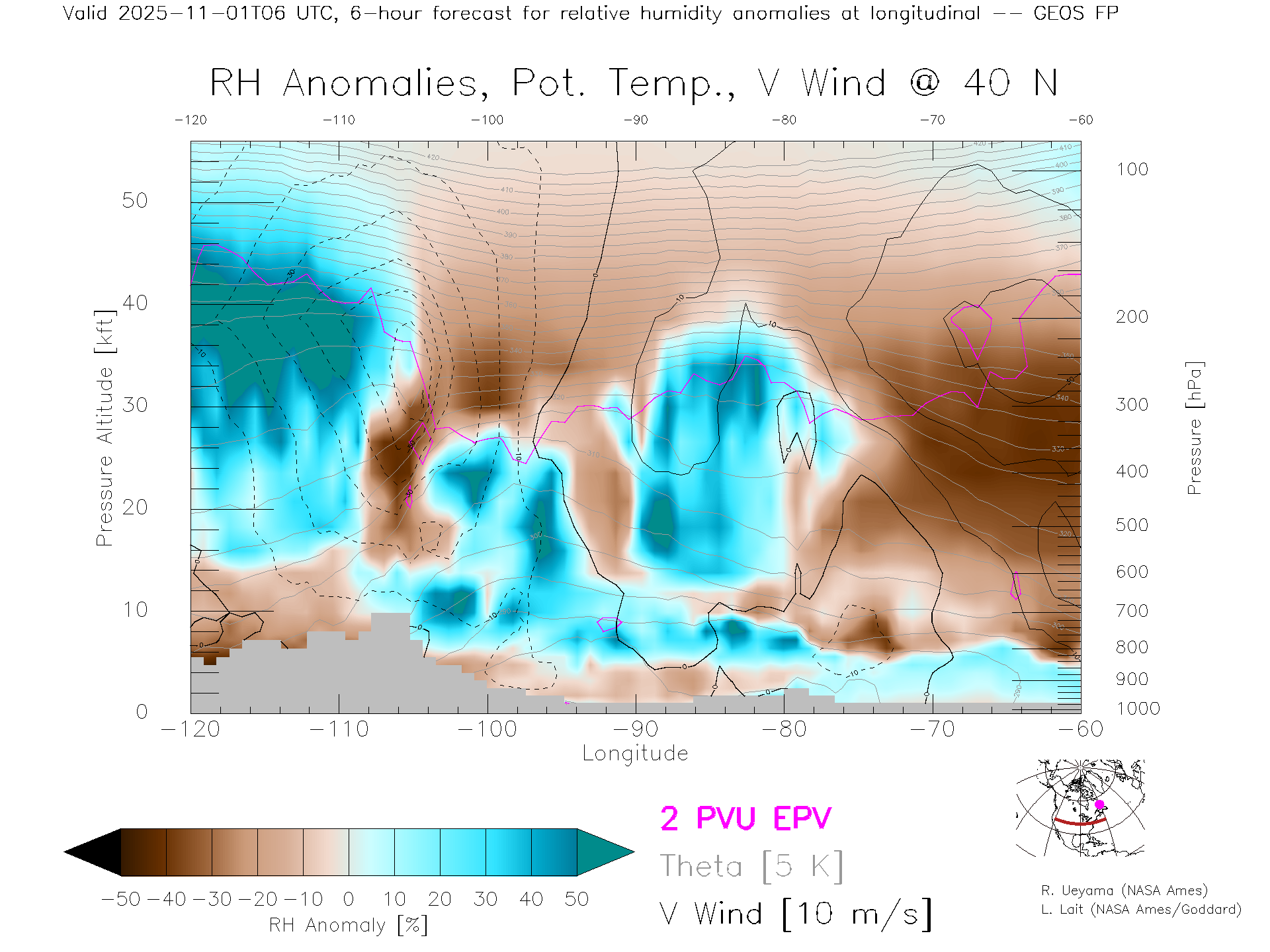 GEOS Forecast Rel. Hum. X-Section (40 N)