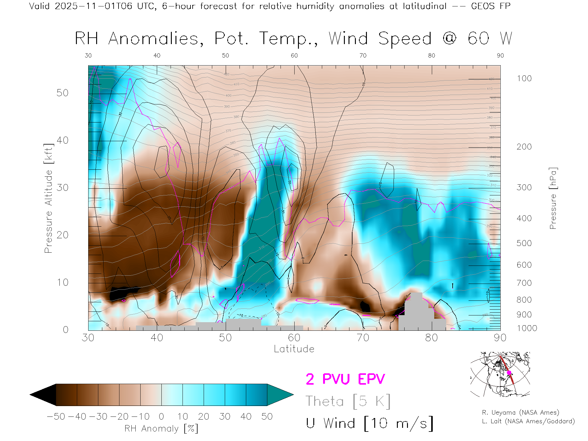 GEOS Forecast Rel. Hum. X-Section (60 W)