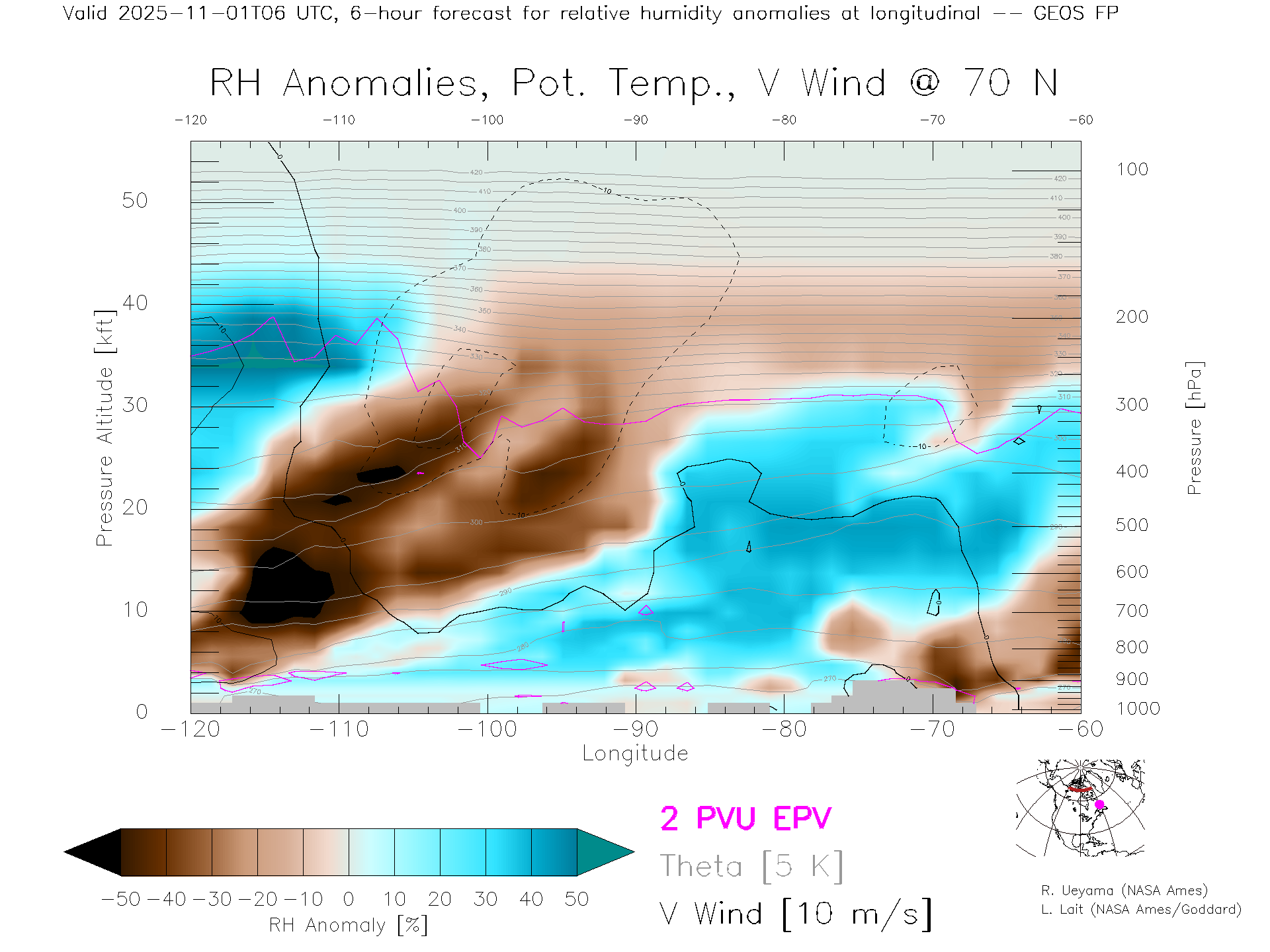 GEOS Forecast Rel. Hum. X-Section (70 N)