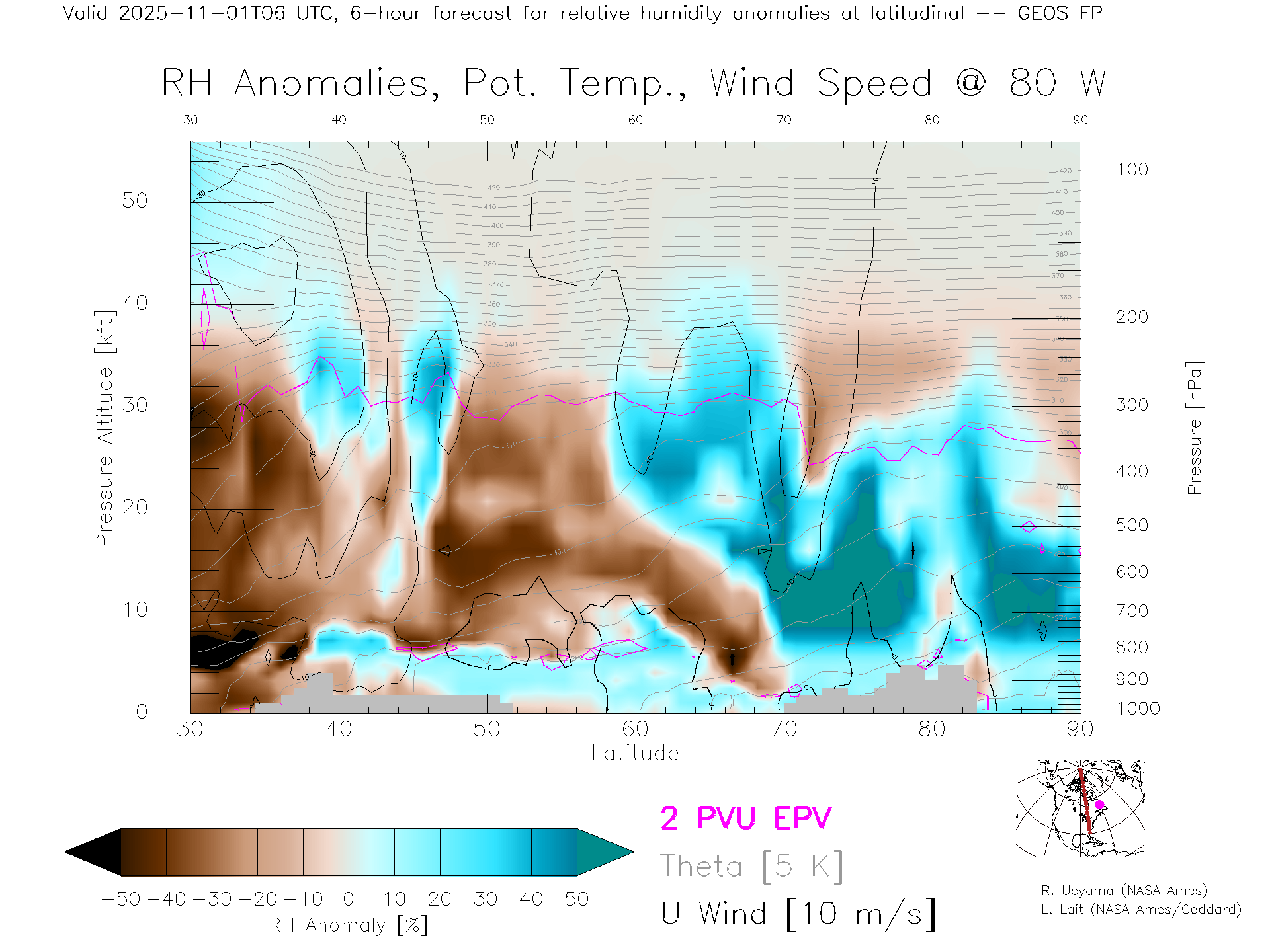 GEOS Forecast Rel. Hum. X-Section (80 W)