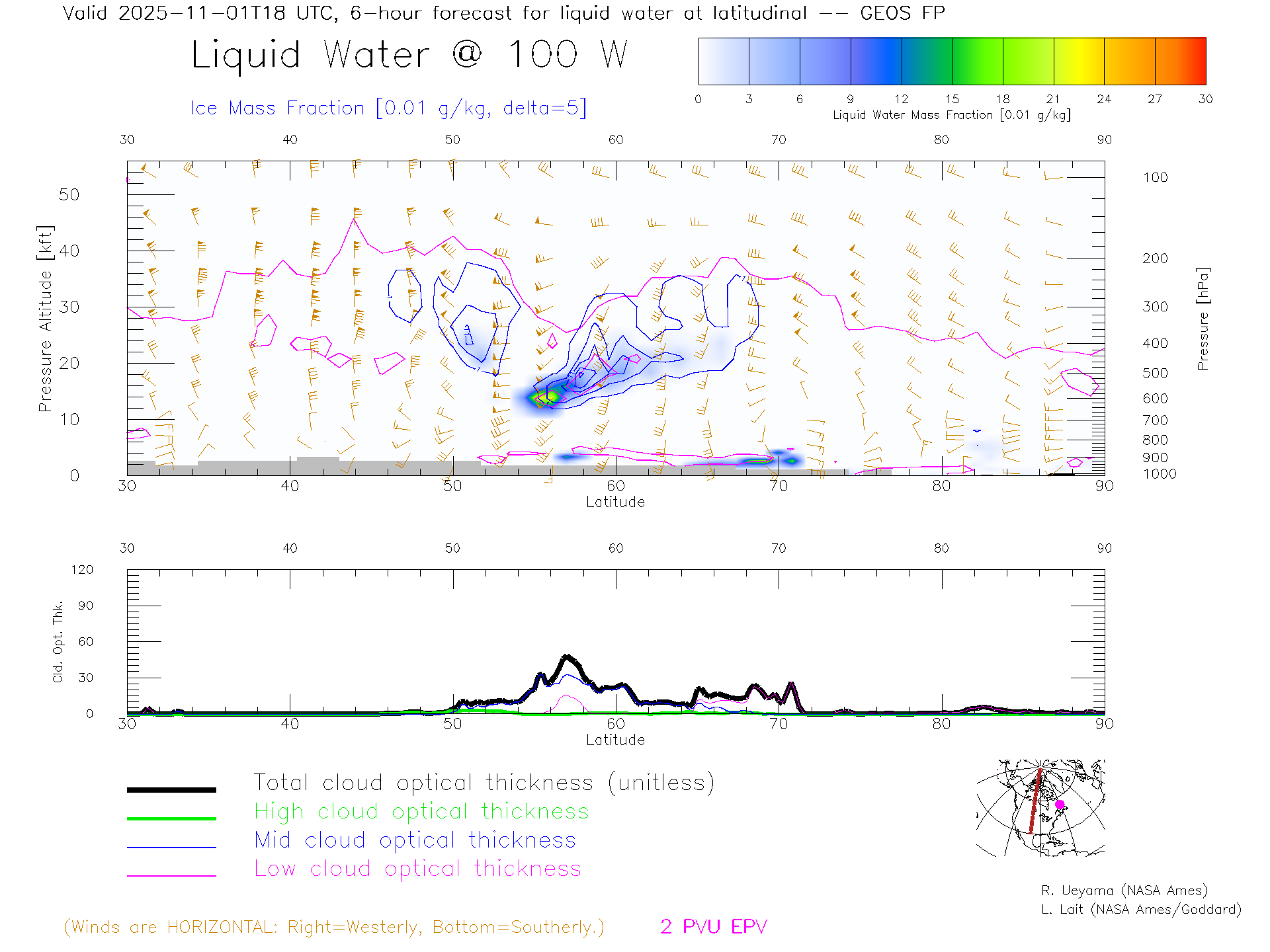 GEOS Forecast Cloud Water Content X-Section (100 W)
