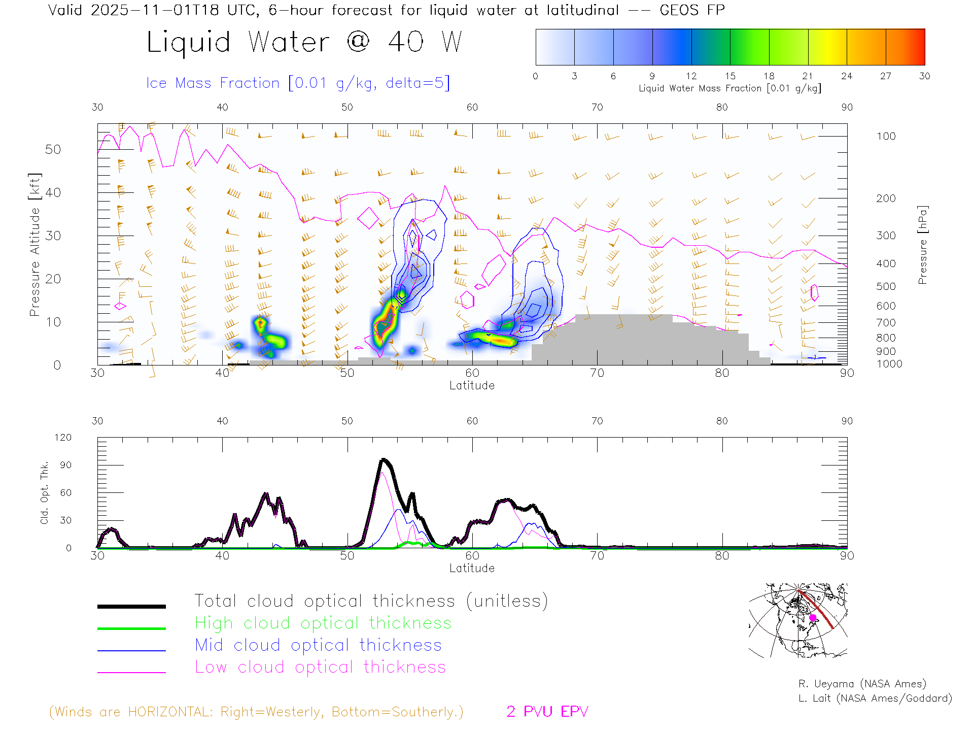 GEOS Forecast Cloud Water Content X-Section (40 W)