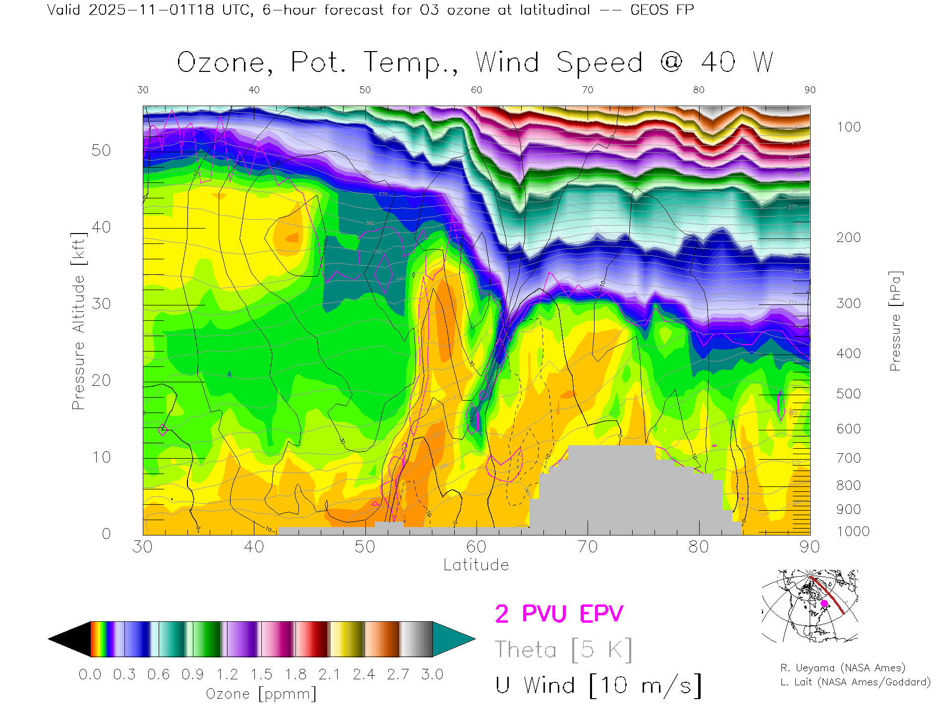 GEOS Forecast Ozone X-Section (40 W)
