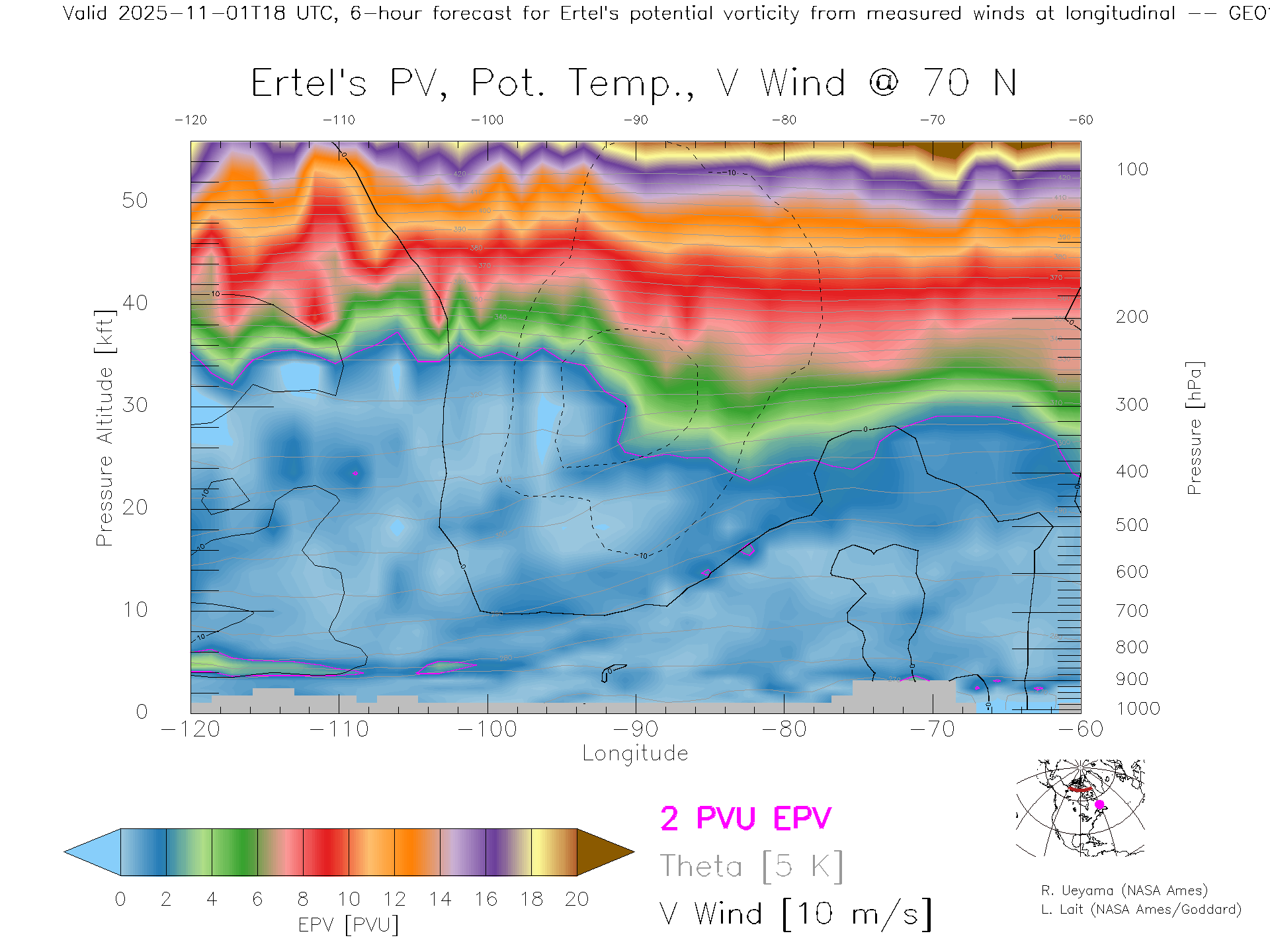 GEOS Forecast PV X-Section (70 N)