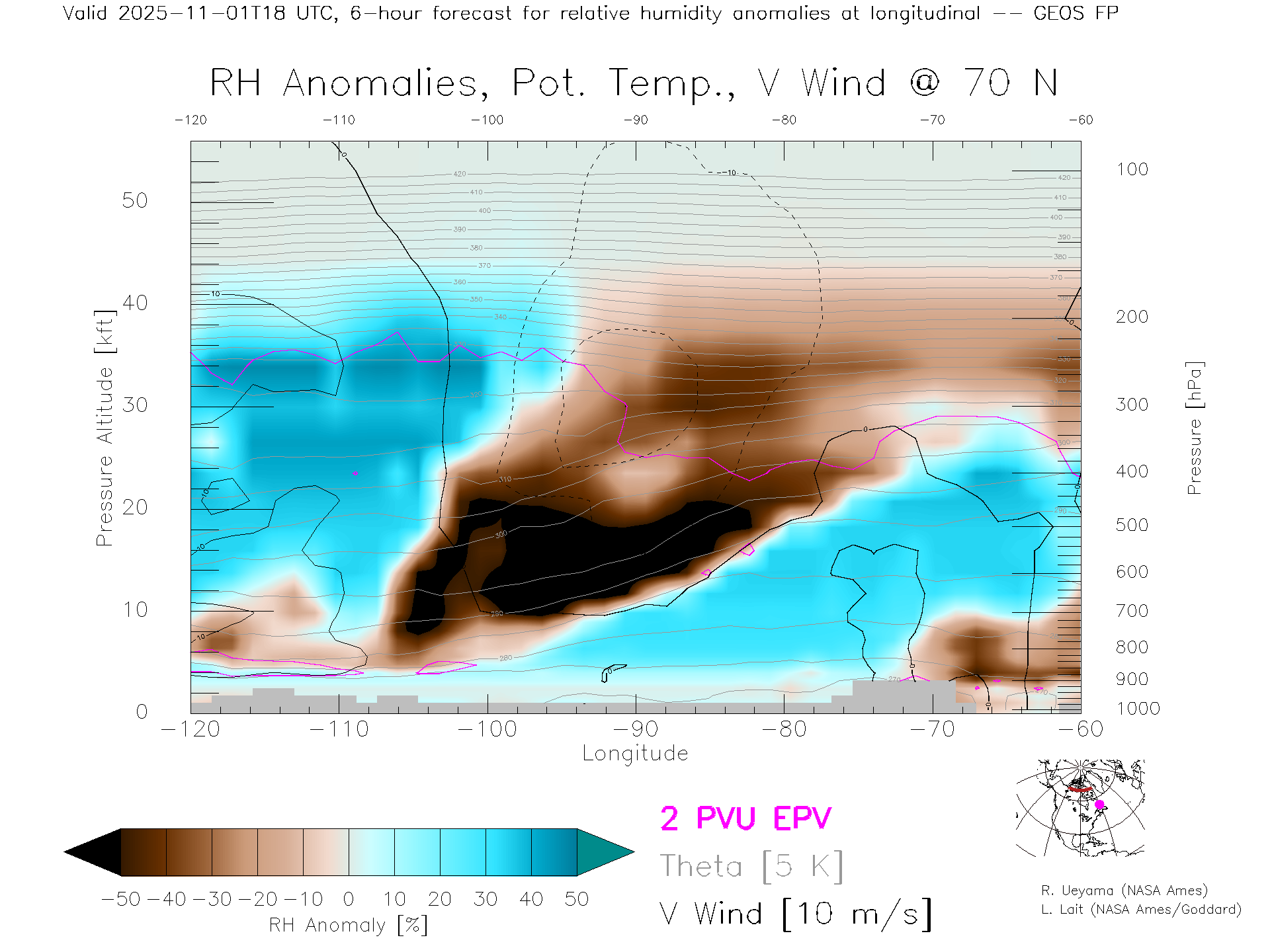 GEOS Forecast Rel. Hum. X-Section (70 N)