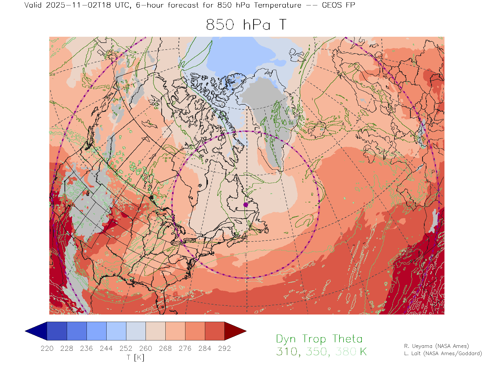 GEOS Forecast 850 hPa Temp.