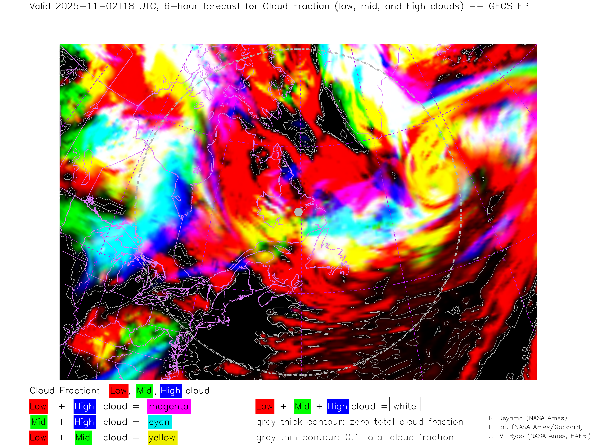 GEOS Forecast Low-, Mid- and High-level Cloud Fraction