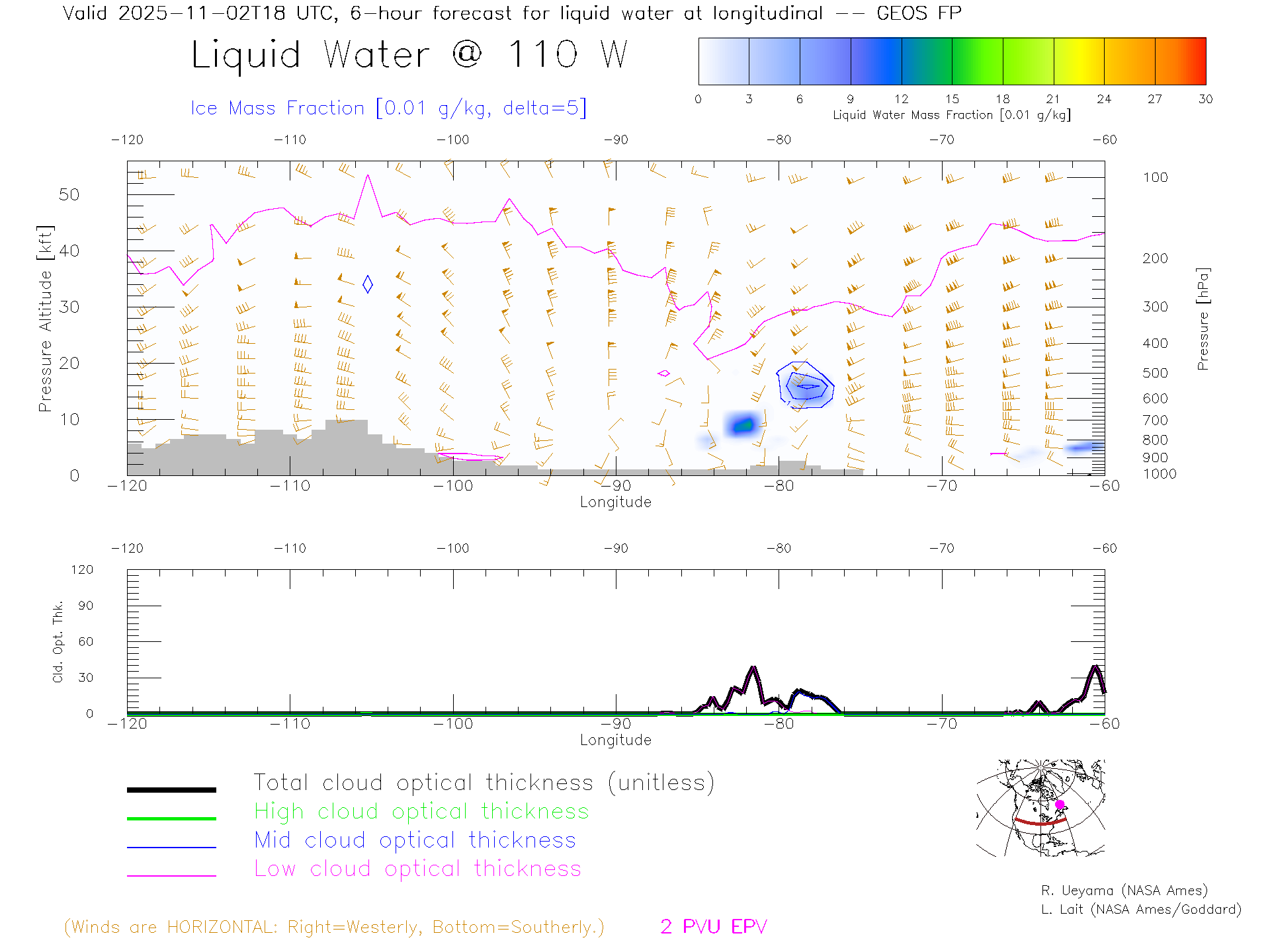 GEOS Forecast Cloud Water Content X-Section (40 N)