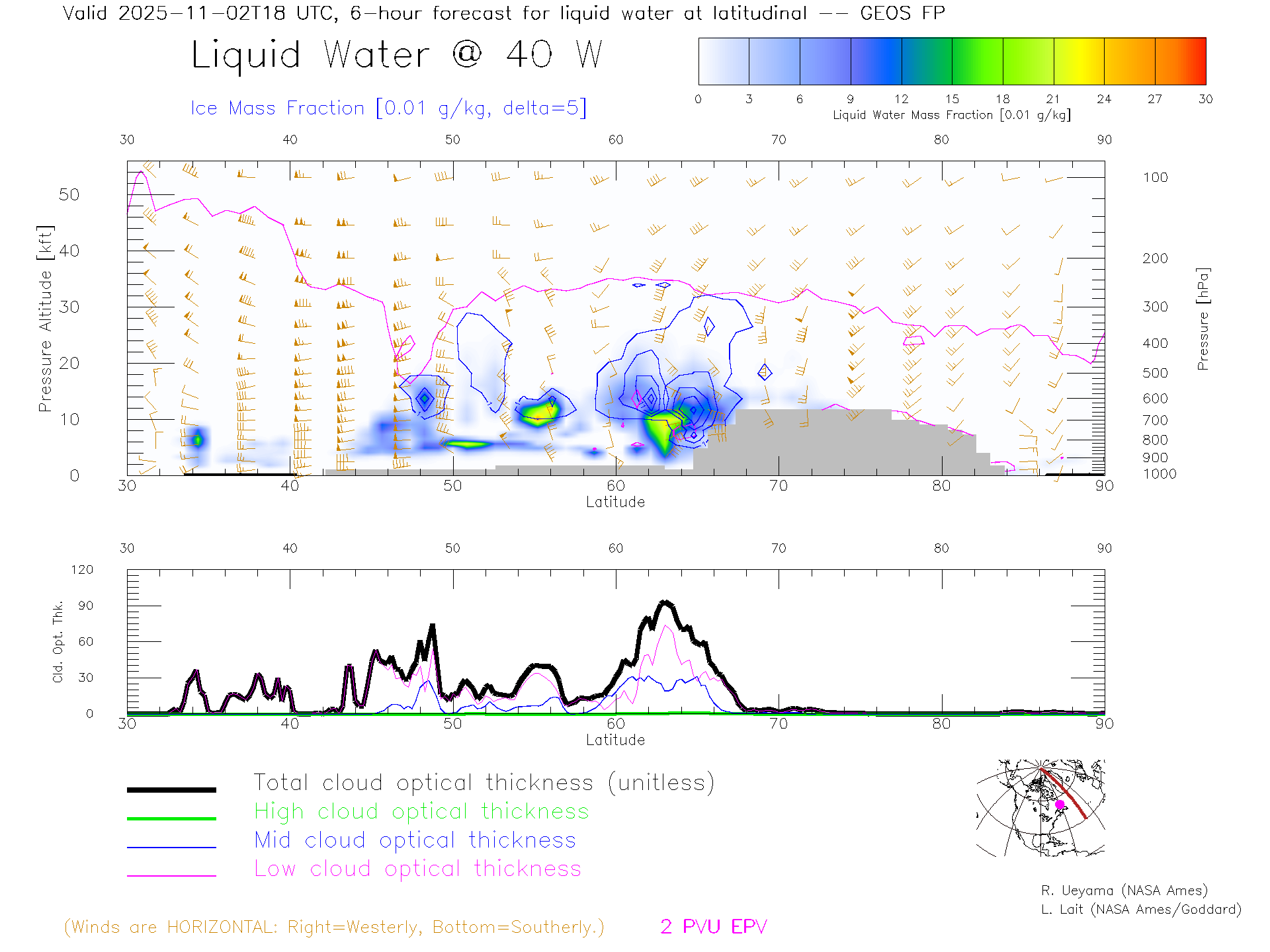 GEOS Forecast Cloud Water Content X-Section (40 W)