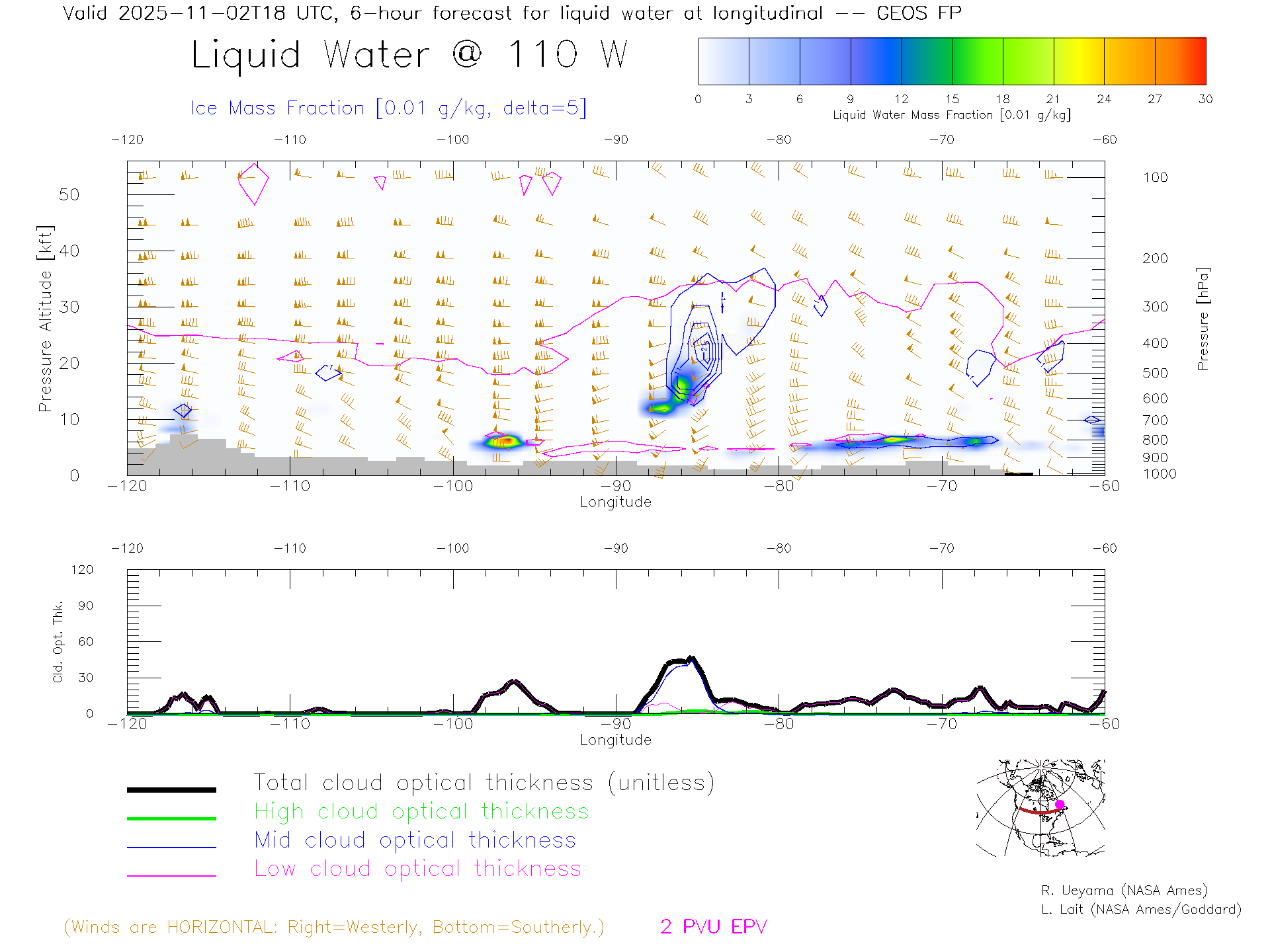 GEOS Forecast Cloud Water Content X-Section (50 N)