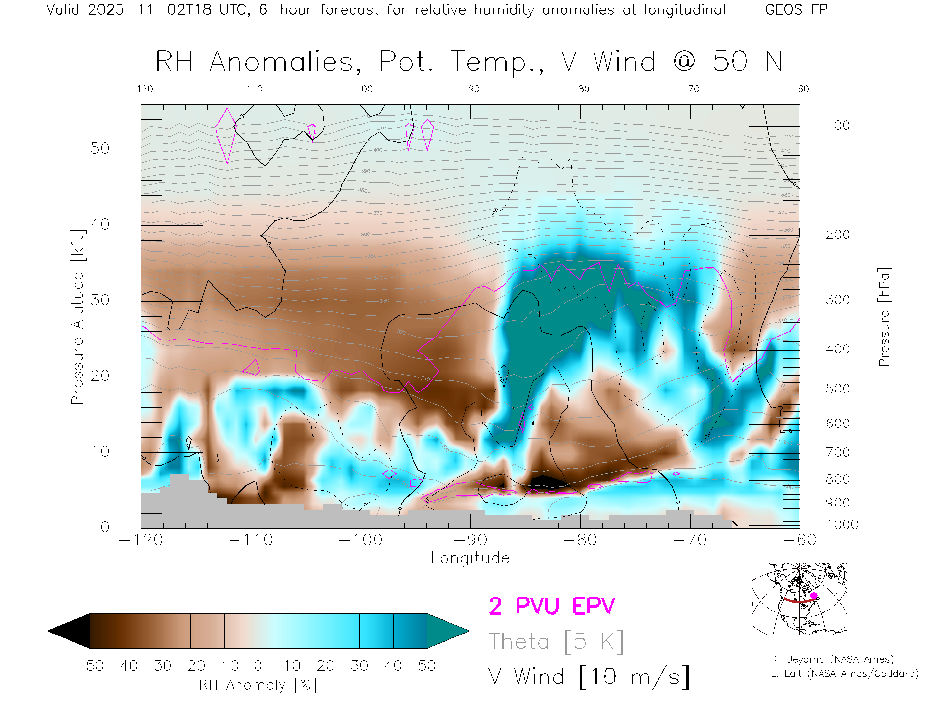GEOS Forecast Rel. Hum. X-Section (50 N)
