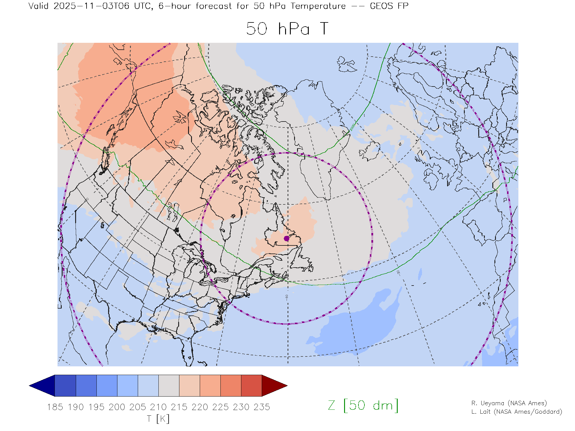 GEOS Forecast 50 hPa Temp.
