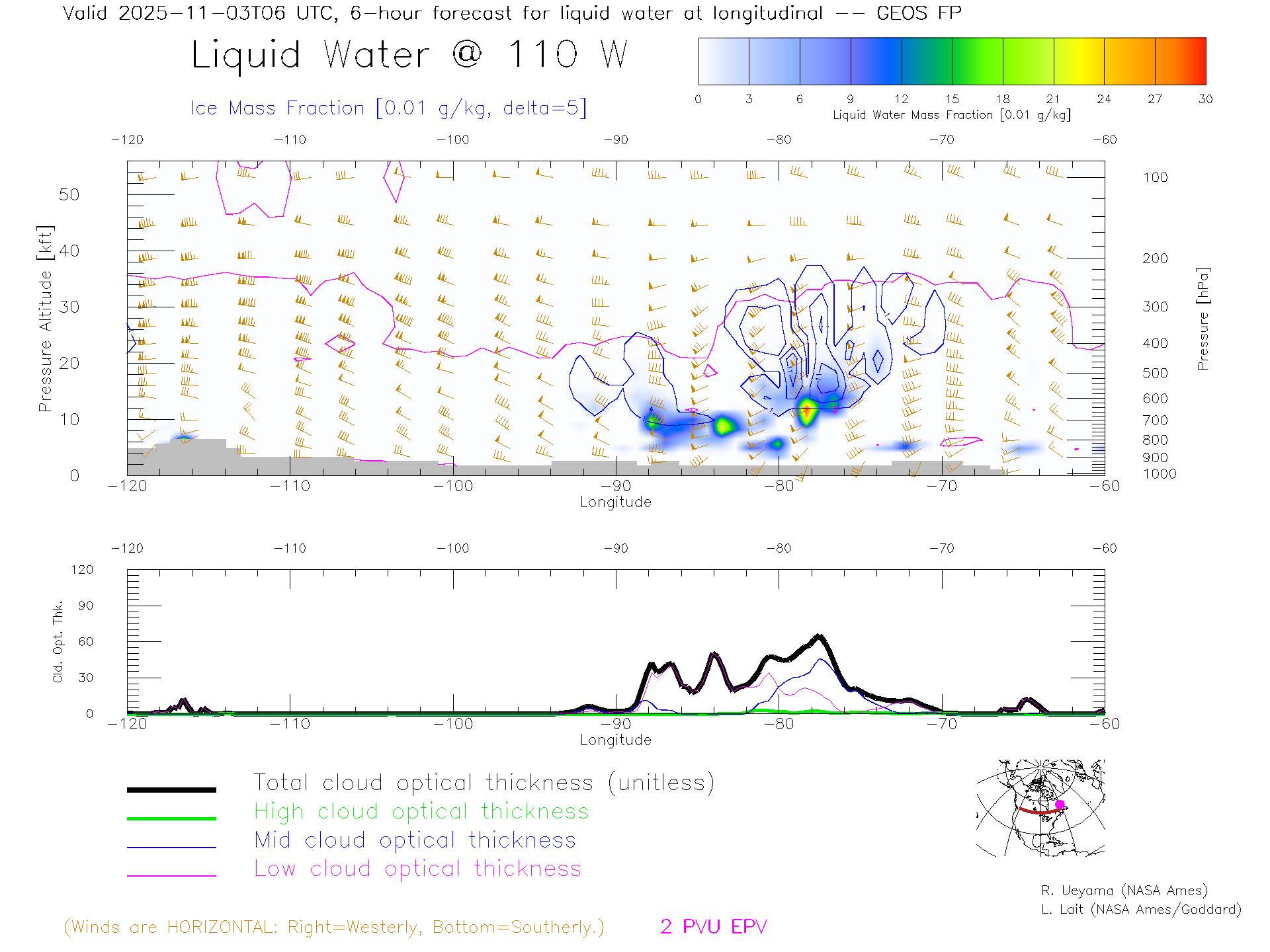 GEOS Forecast Cloud Water Content X-Section (50 N)