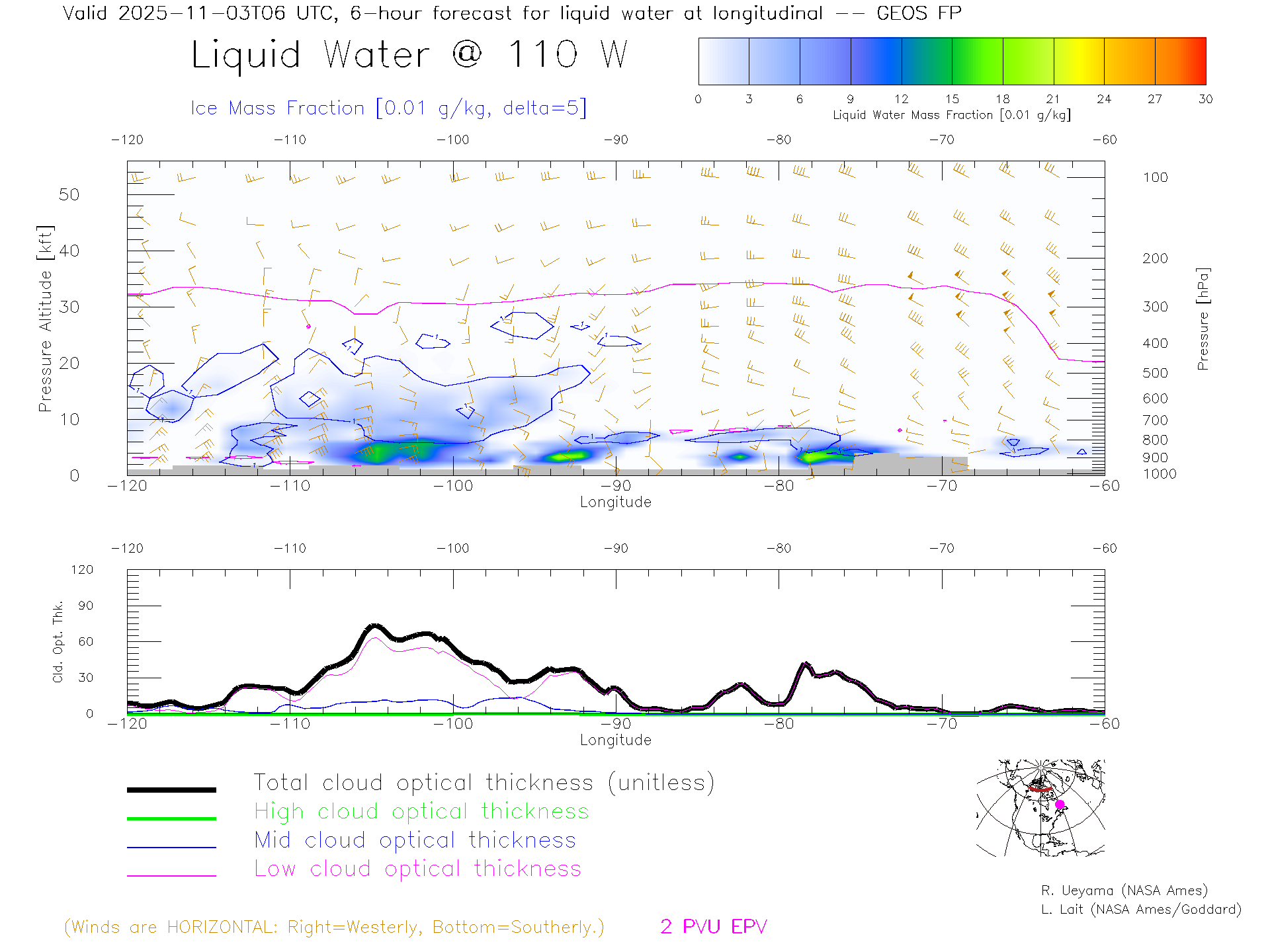 GEOS Forecast Cloud Water Content X-Section (70 N)