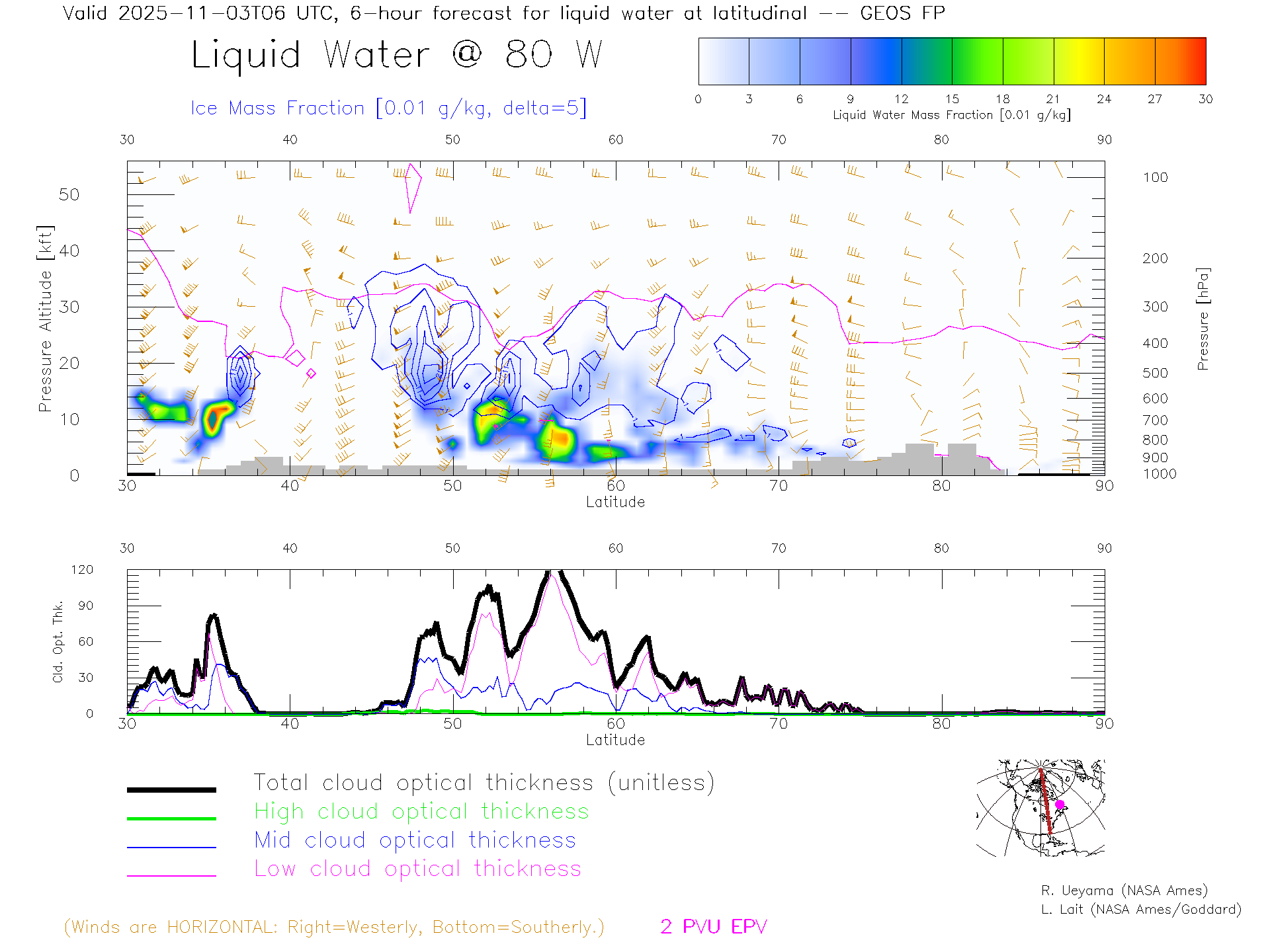 GEOS Forecast Cloud Water Content X-Section (80 W)