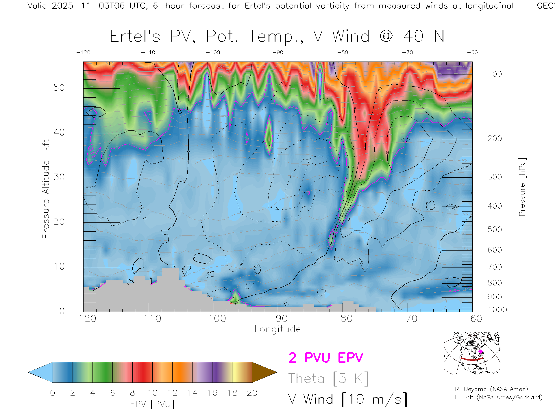 GEOS Forecast PV X-Section (40 N)