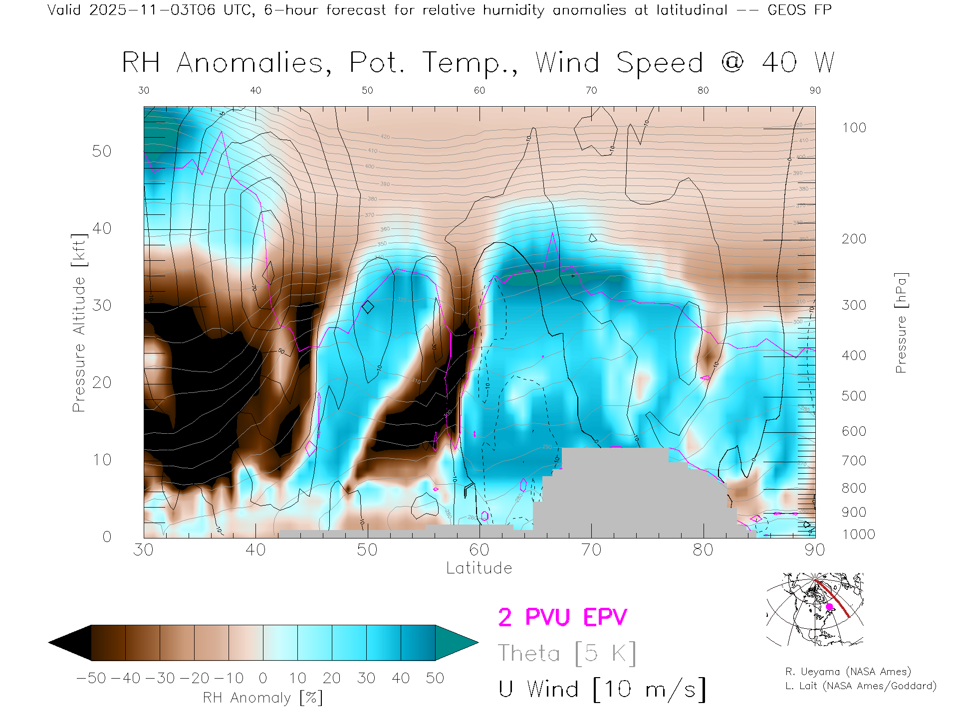 GEOS Forecast Rel. Hum. X-Section (40 W)