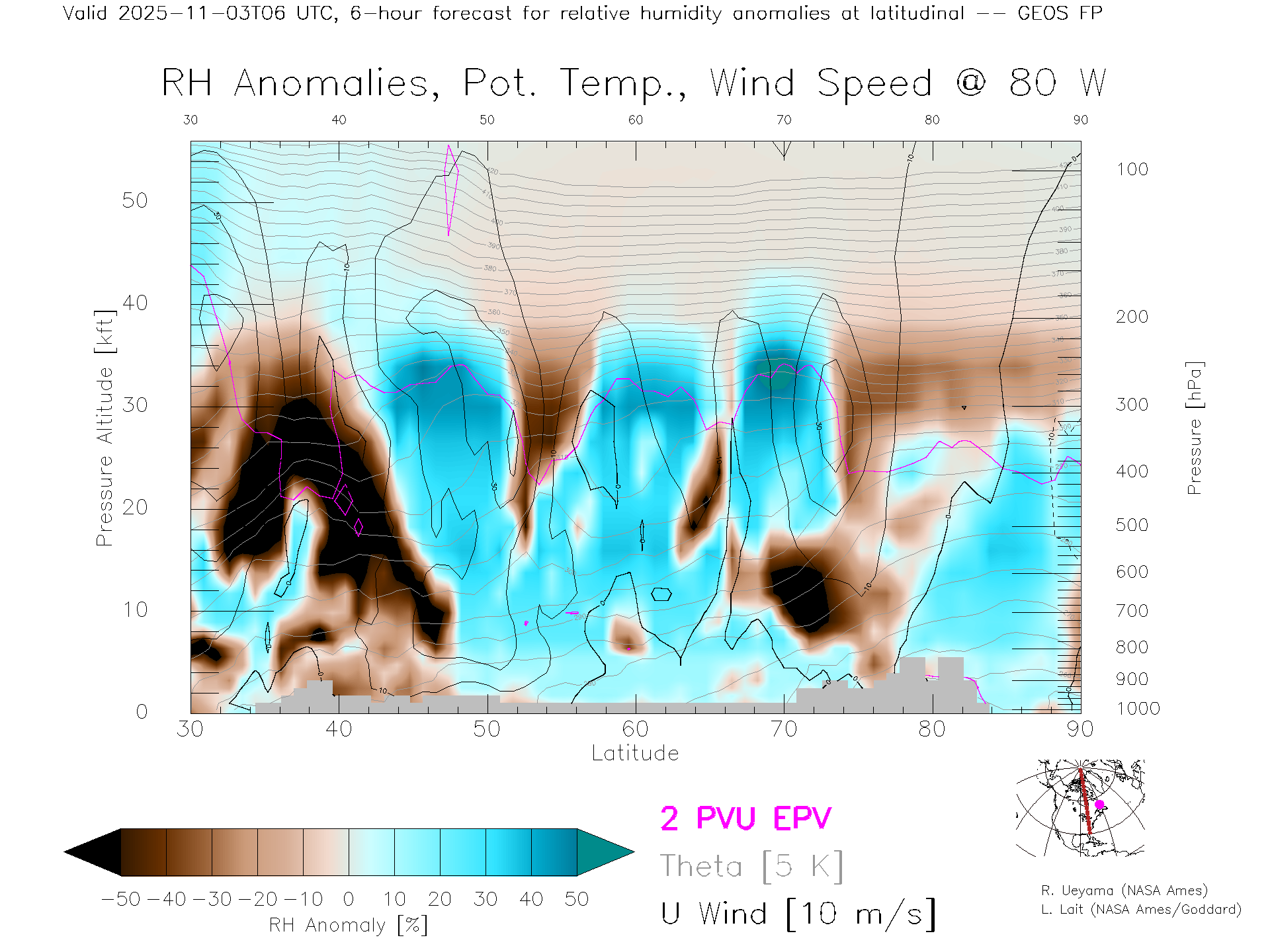 GEOS Forecast Rel. Hum. X-Section (80 W)