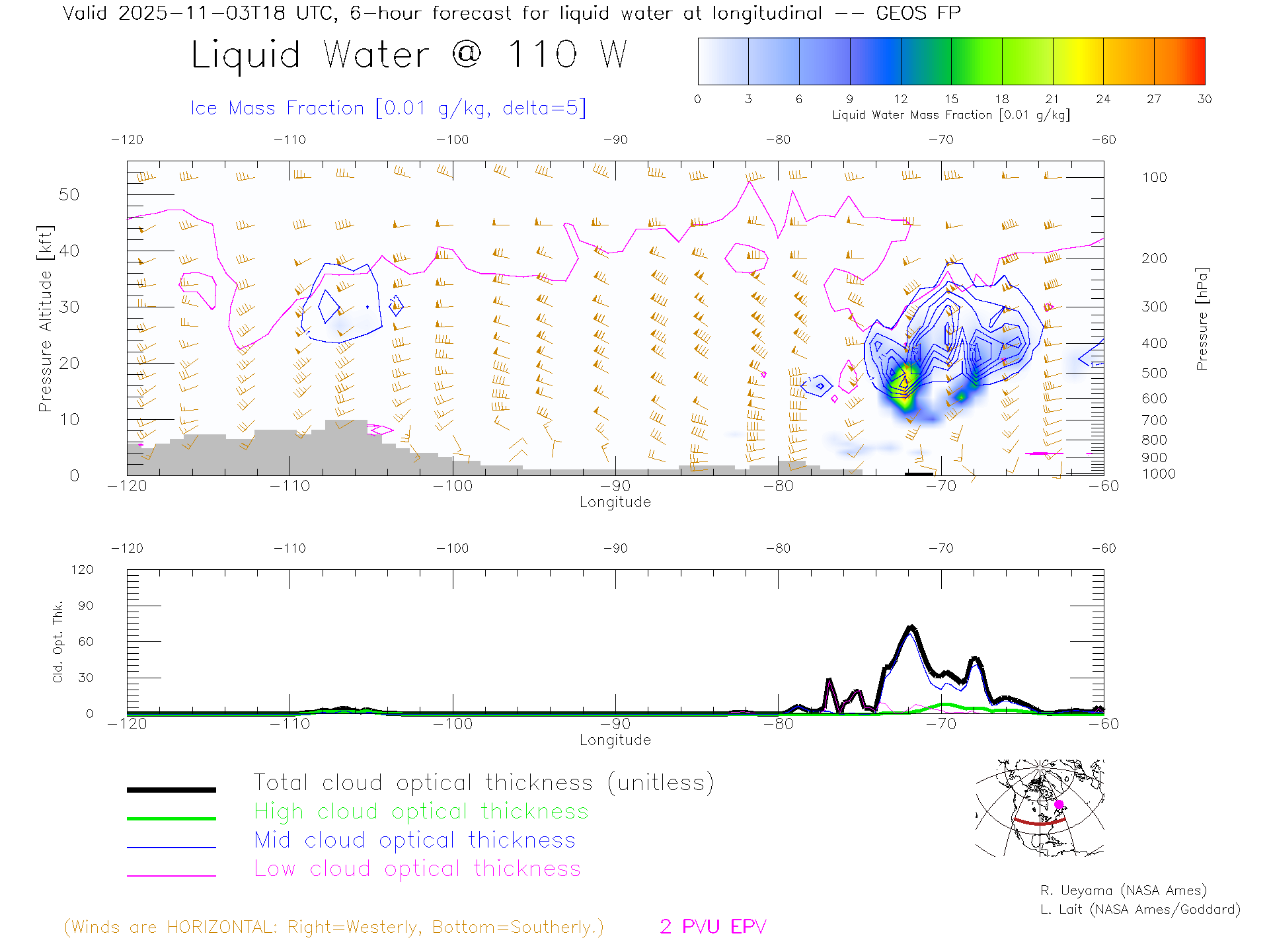 GEOS Forecast Cloud Water Content X-Section (40 N)
