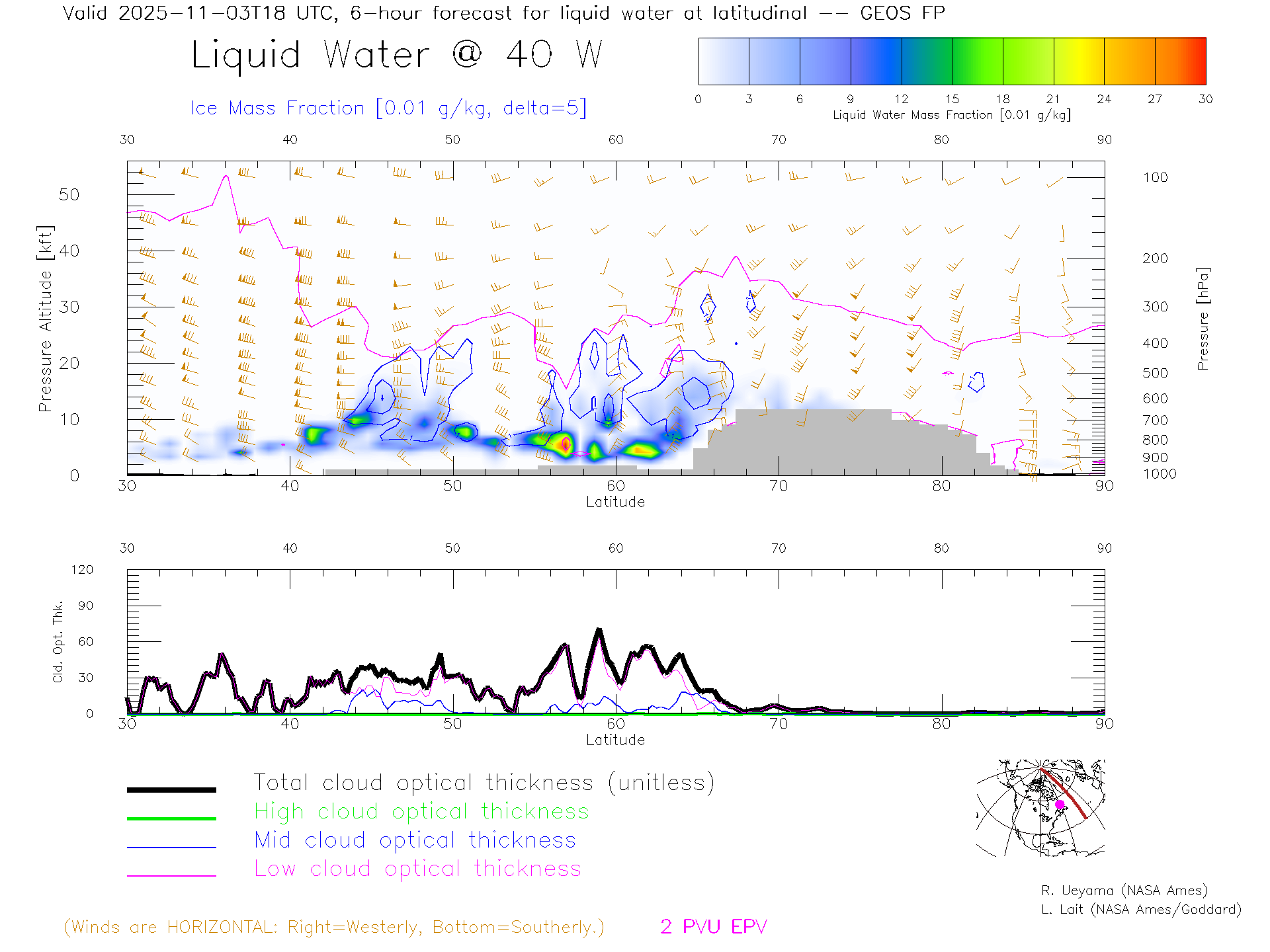 GEOS Forecast Cloud Water Content X-Section (40 W)