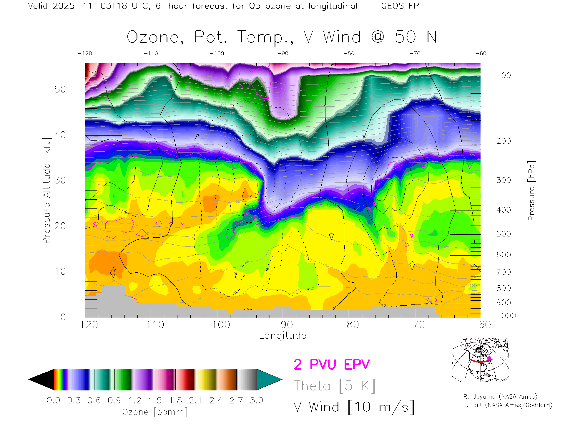 GEOS Forecast Ozone X-Section (50 N)