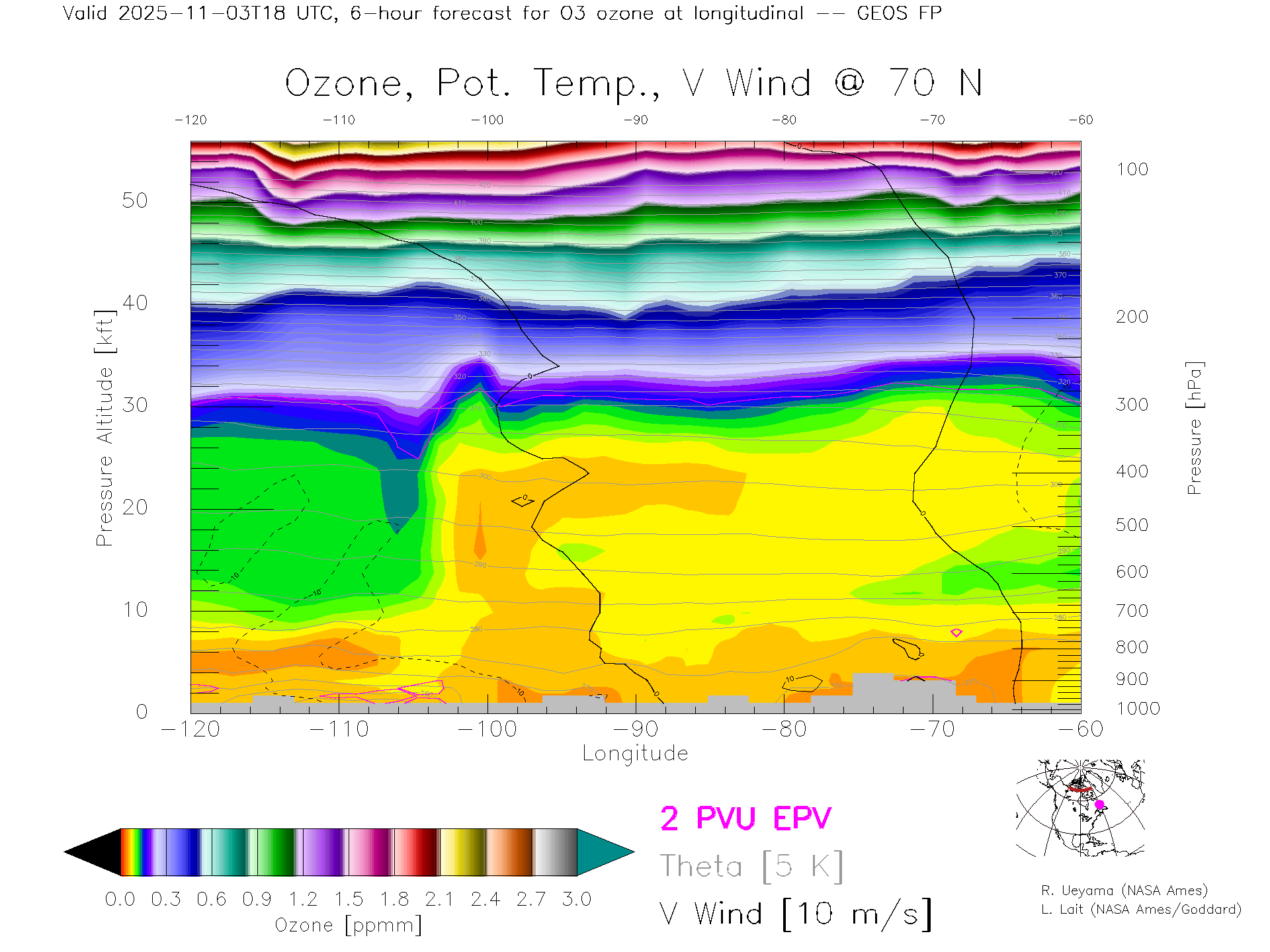 GEOS Forecast Ozone X-Section (70 N)