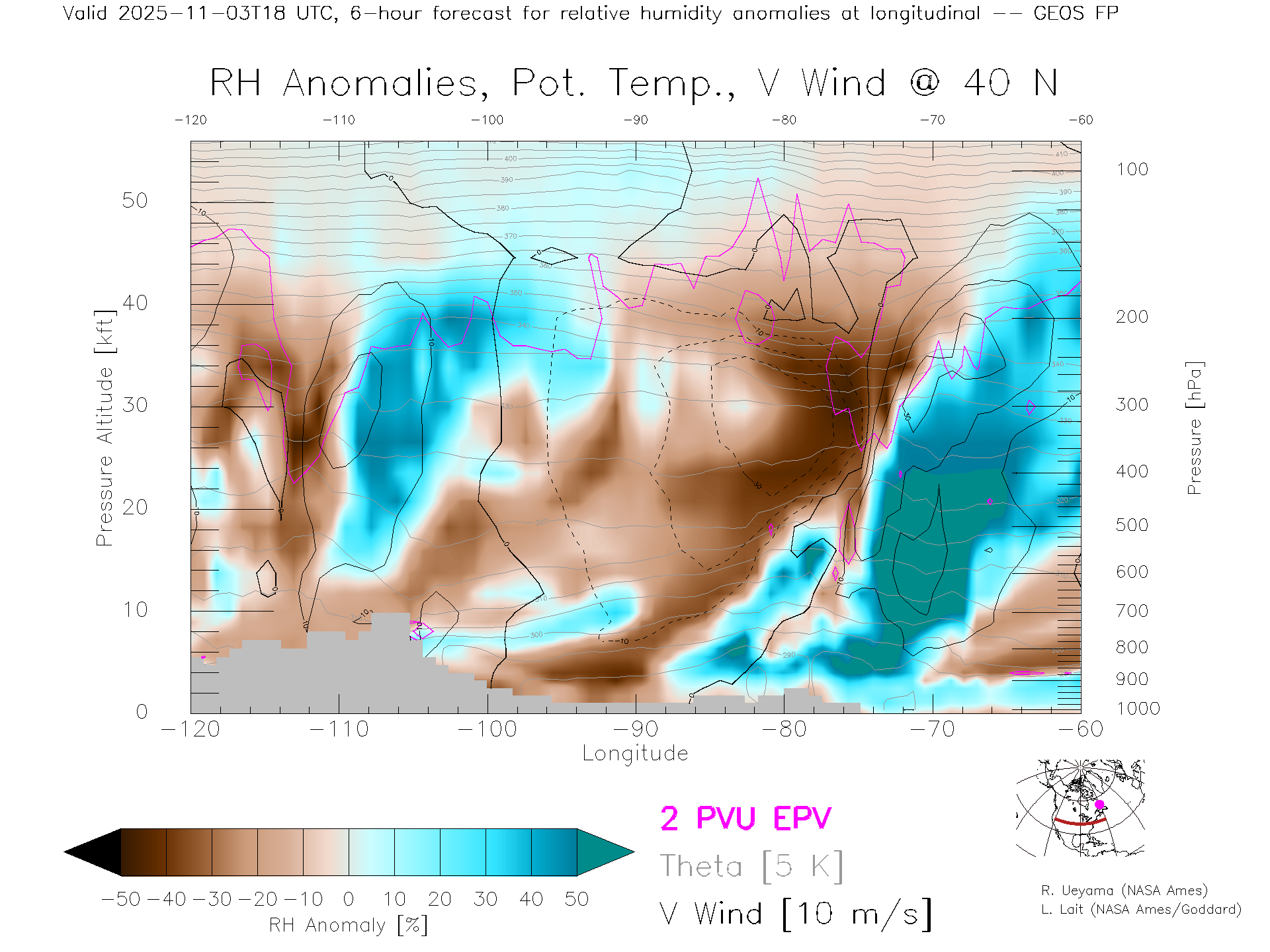 GEOS Forecast Rel. Hum. X-Section (40 N)