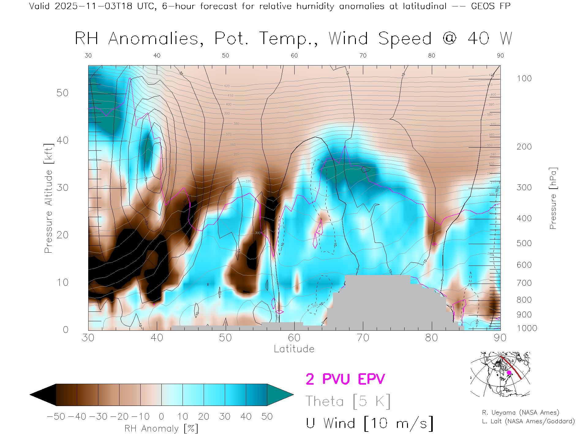 GEOS Forecast Rel. Hum. X-Section (40 W)