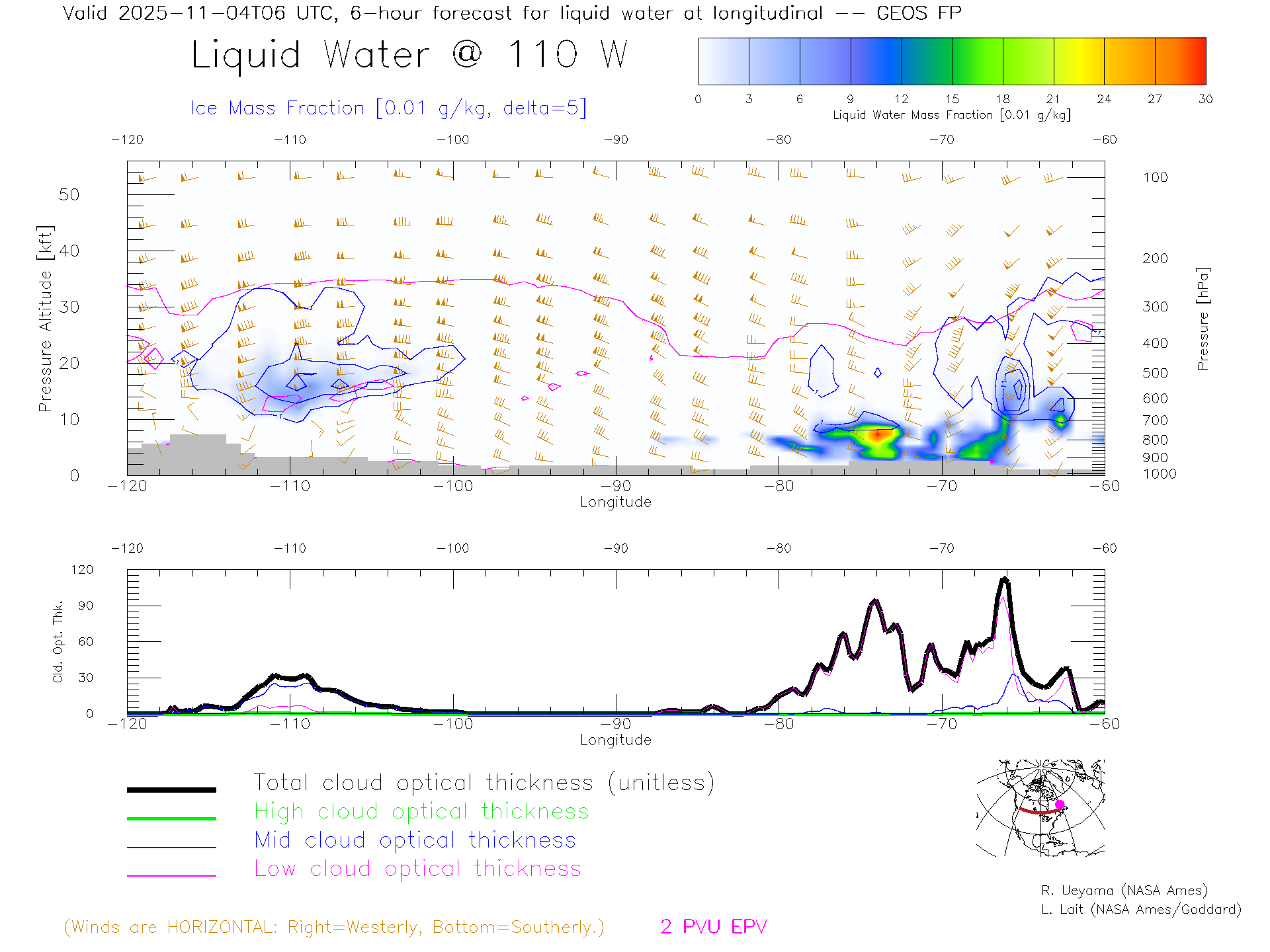 GEOS Forecast Cloud Water Content X-Section (50 N)