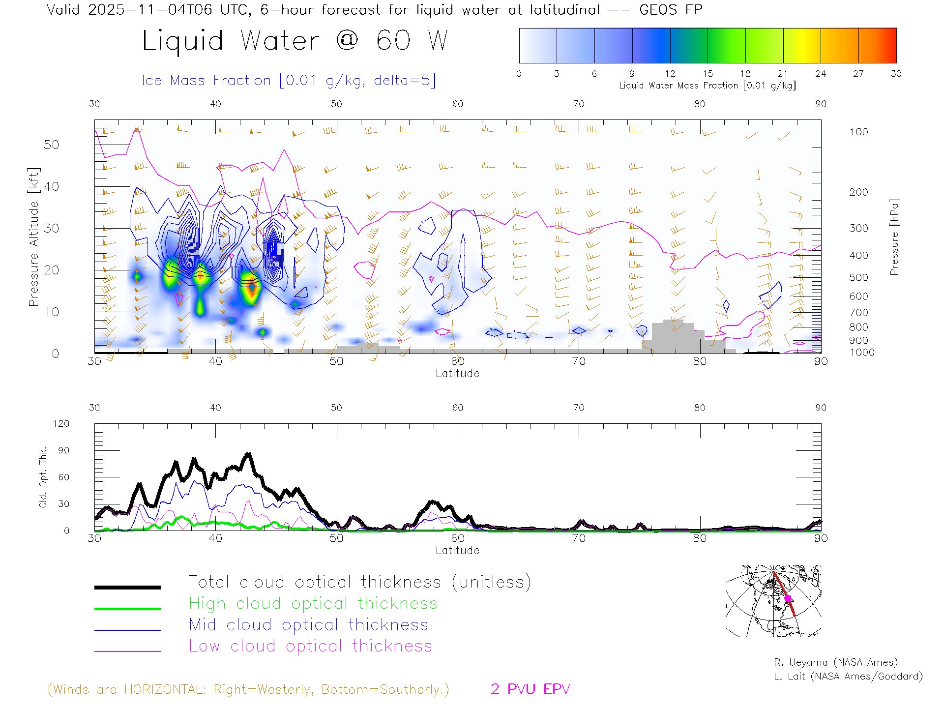 GEOS Forecast Cloud Water Content X-Section (60 W)
