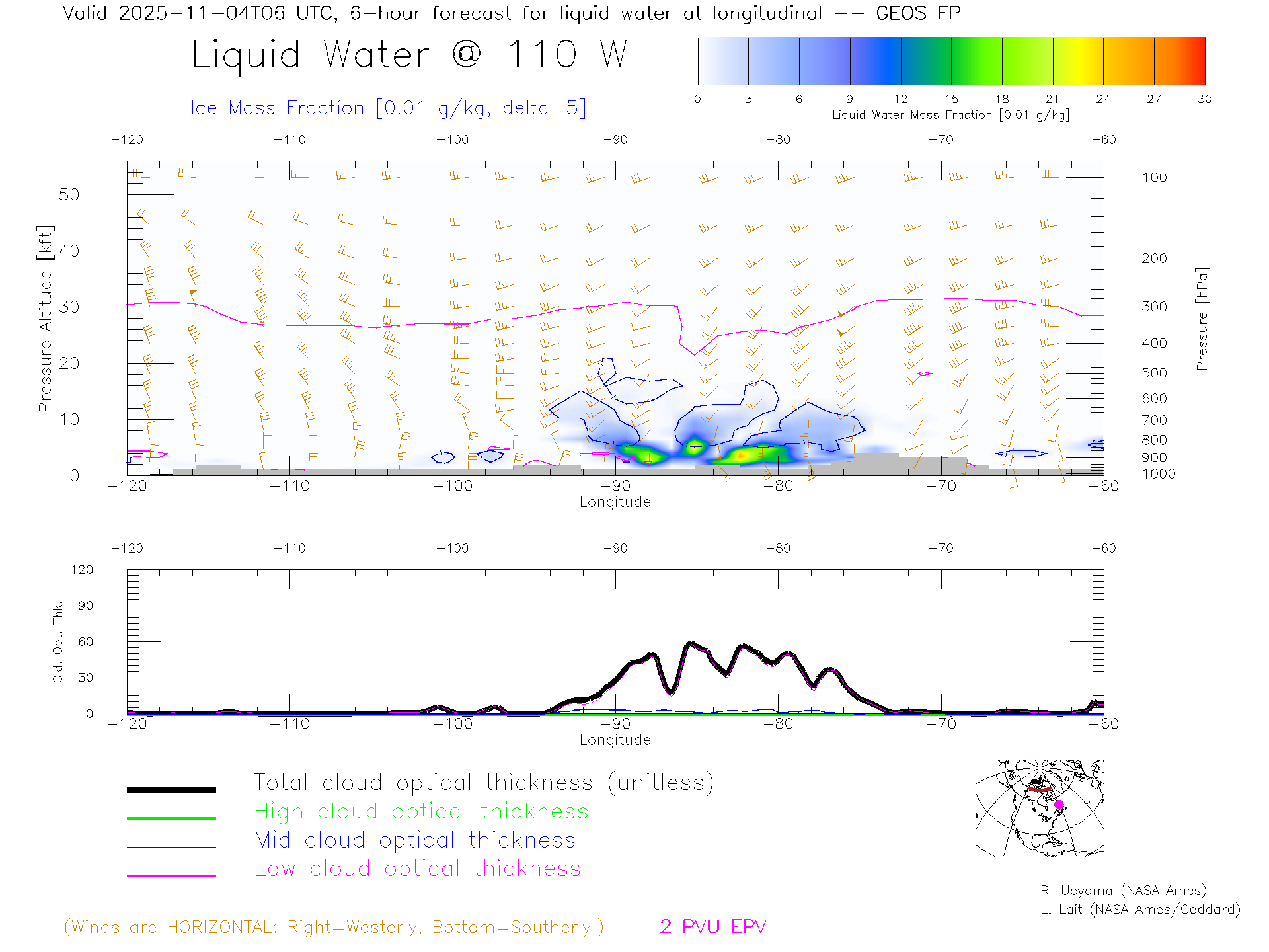 GEOS Forecast Cloud Water Content X-Section (70 N)
