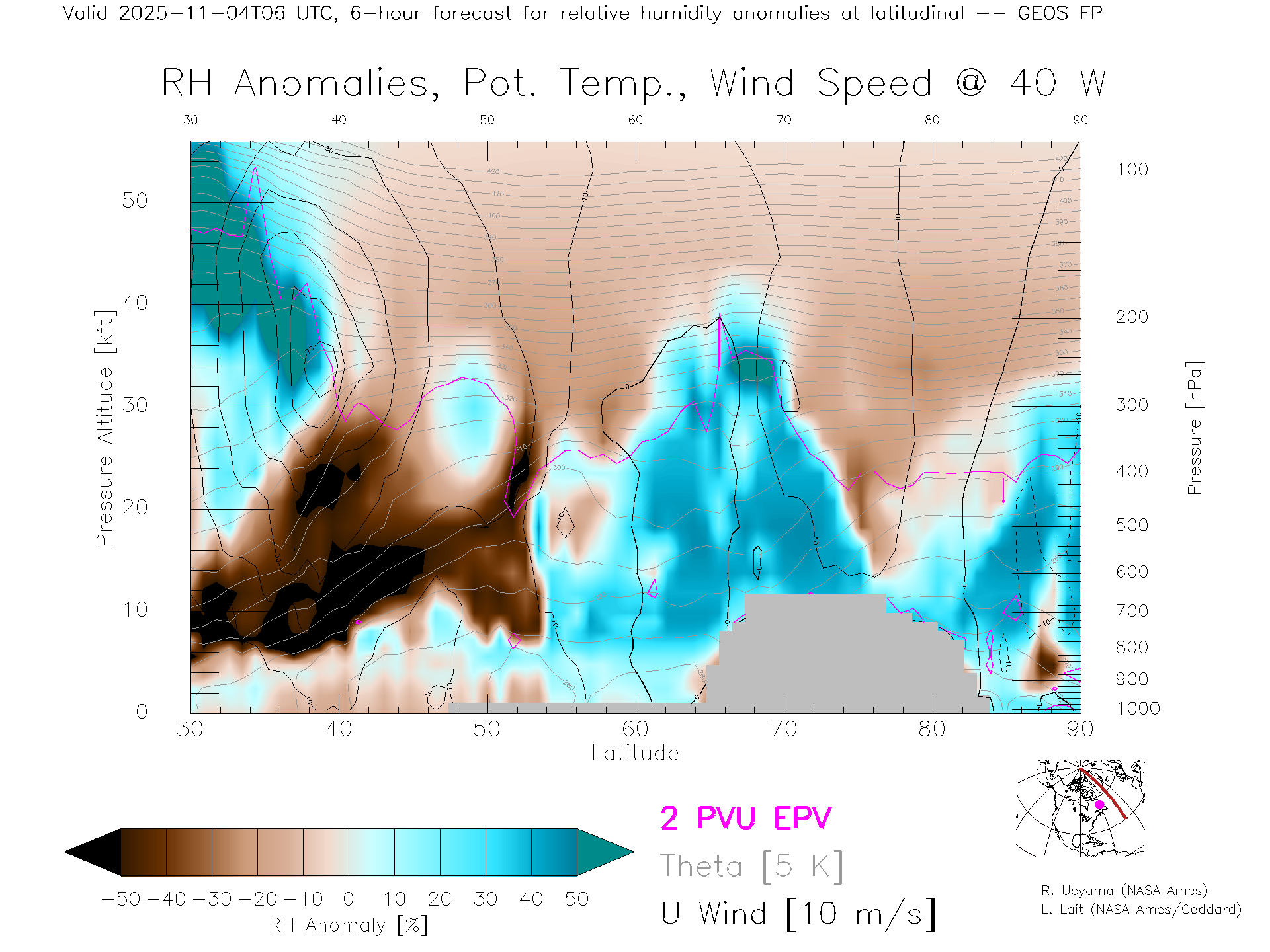 GEOS Forecast Rel. Hum. X-Section (40 W)