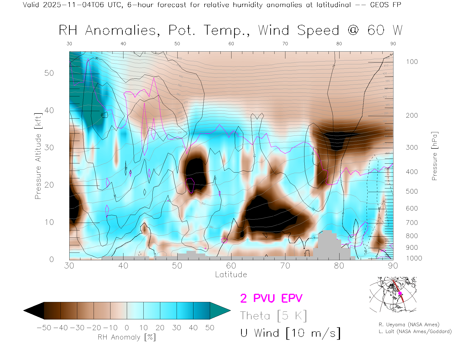 GEOS Forecast Rel. Hum. X-Section (60 W)